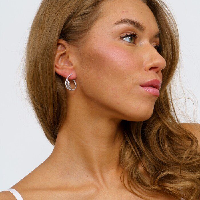 Серьги ювелирная бижутерия коллекция "Дубай" посеребрение, вставка фианиты, цвет:прозрачный, 01180, арт.001.478