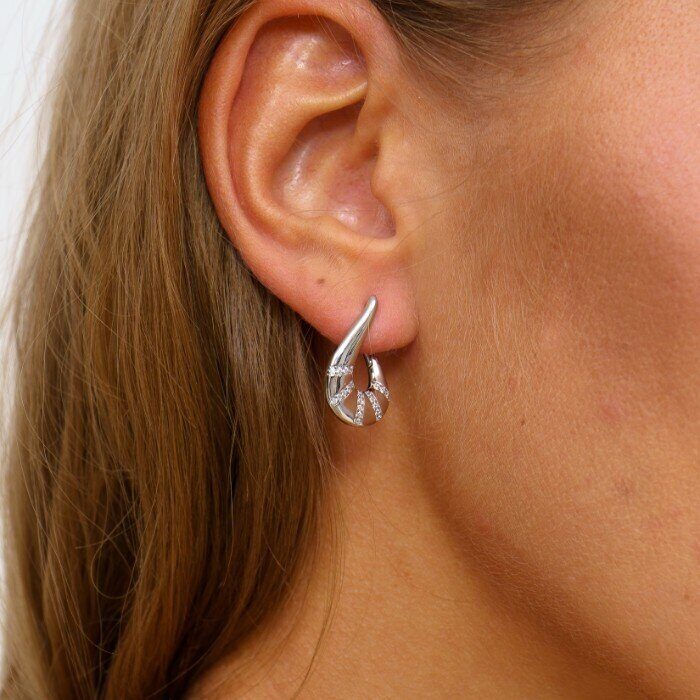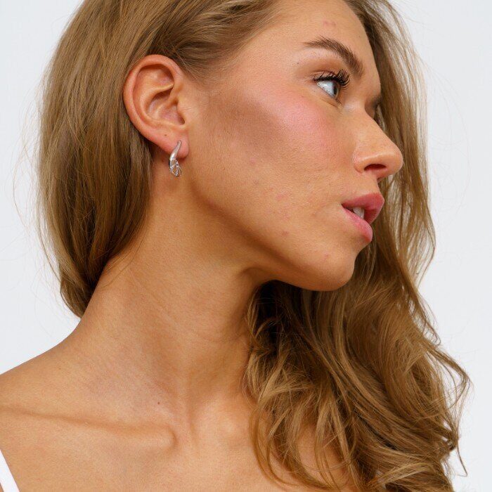 Серьги ювелирная бижутерия коллекция "Дубай" посеребрение, вставка фианиты, цвет:прозрачный, 07520, арт.001.494