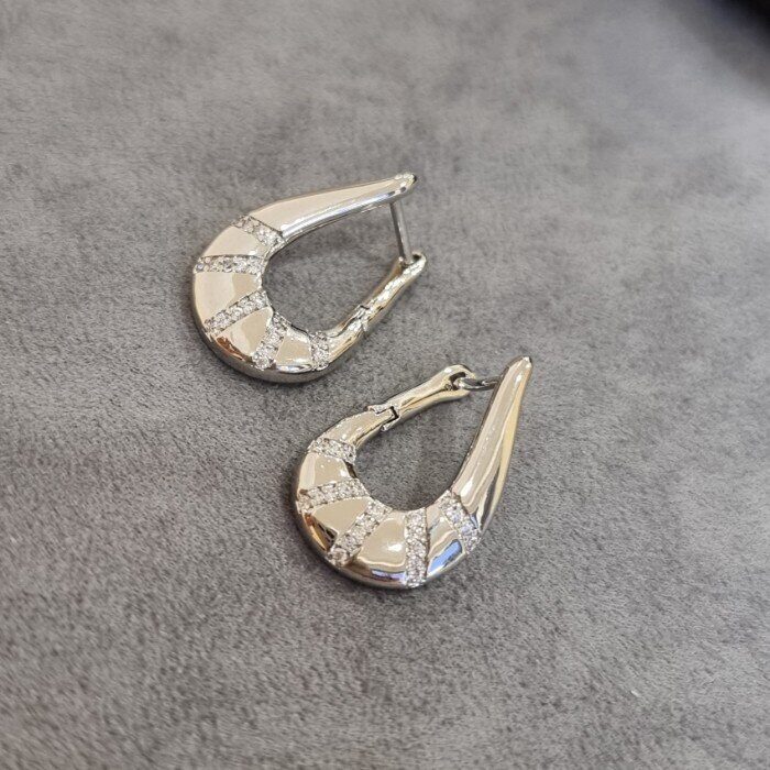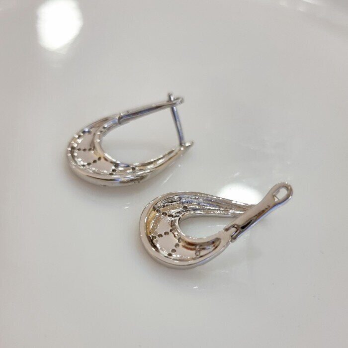 Описание Размер: 2,3*1,5 см. Замок: английский. Материал: бижутерный сплав, фианиты. Вес: 4 гр.