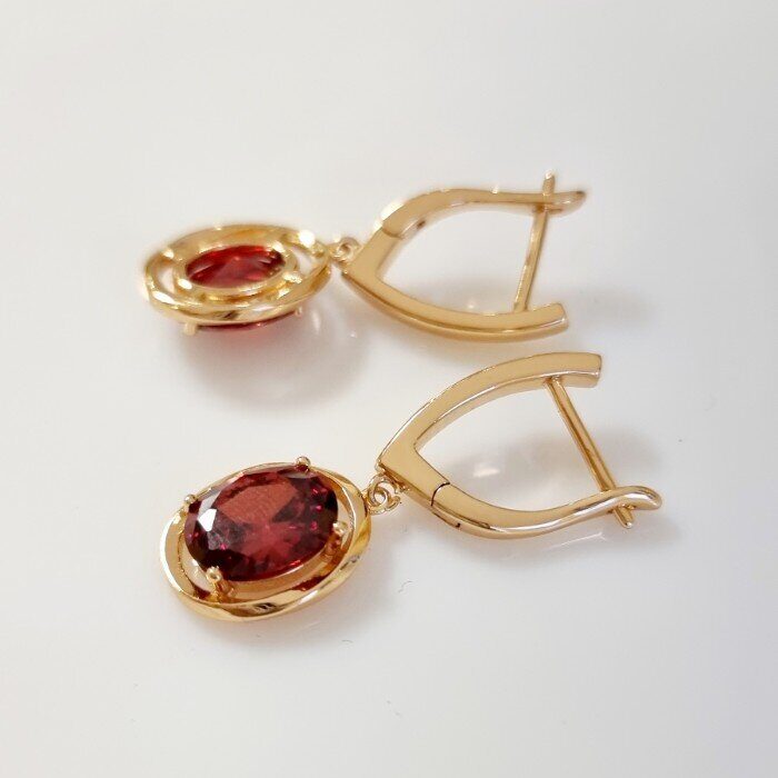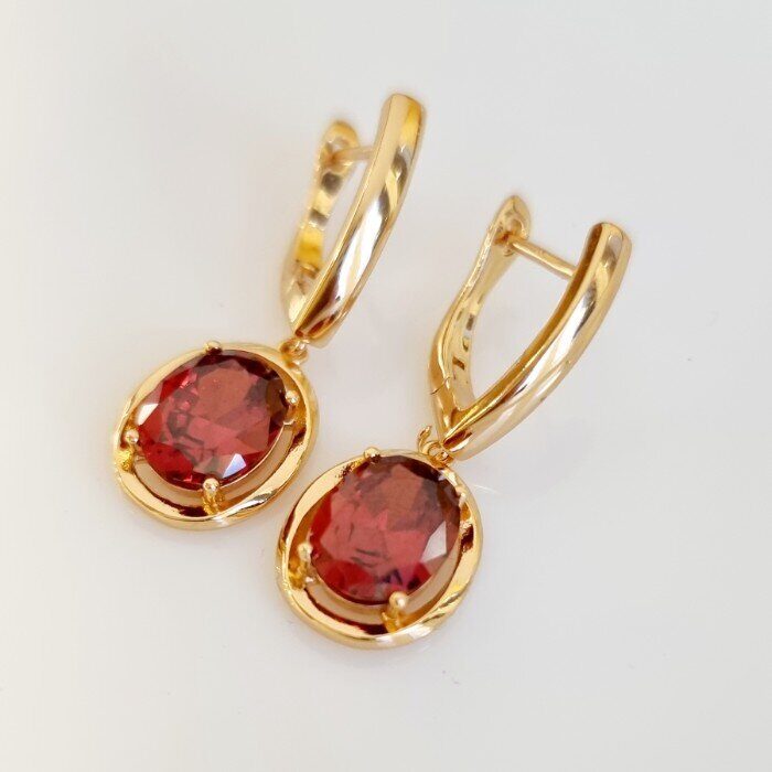 Серьги ювелирная бижутерия коллекция "Дубай" позолота, цвет камня: красный, 08602, арт.001.468