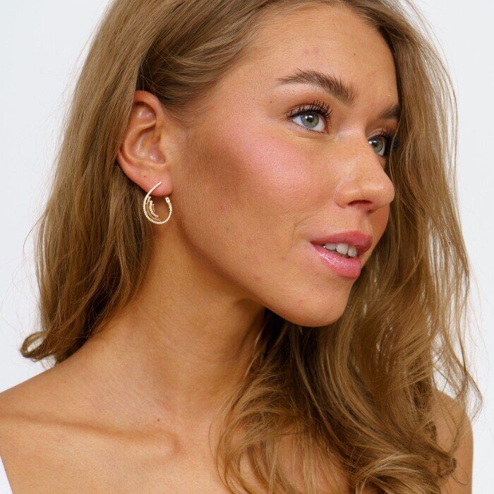 Серьги ювелирная бижутерия коллекция "Дубай" позолота, вставка фианиты, цвет:прозрачный, 01180, арт.001.479