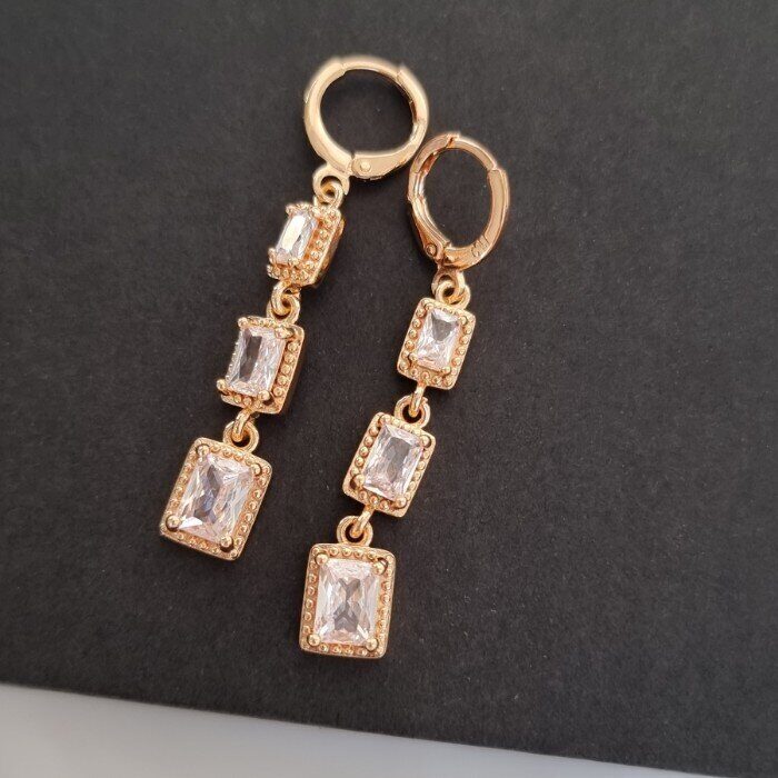 Серьги ювелирная бижутерия коллекция "Дубай" позолота, вставка фианиты, цвет: прозрачный,07520, арт.001.531