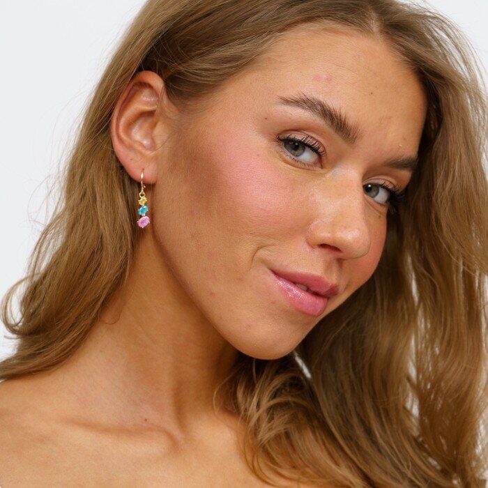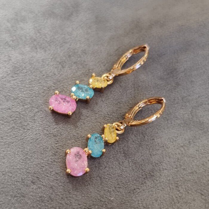Серьги ювелирная бижутерия коллекция "Дубай" позолота, вставка фианиты, цвет:желтый, голубой, розовый, 06902, арт.001.491