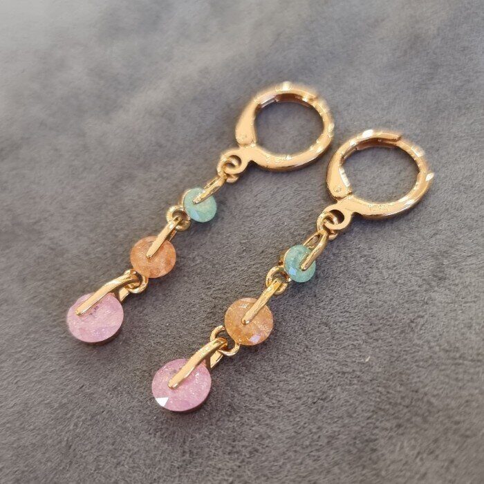 Описание Размер: 4,2*0,5 см. Замок: левербек. Материал: бижутерный сплав, ювелирное стекло. Вес: 3 гр.