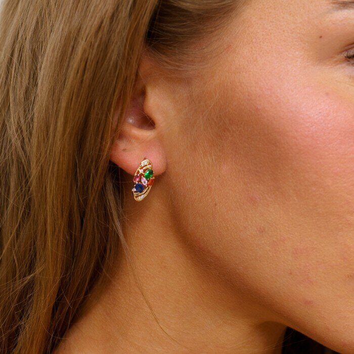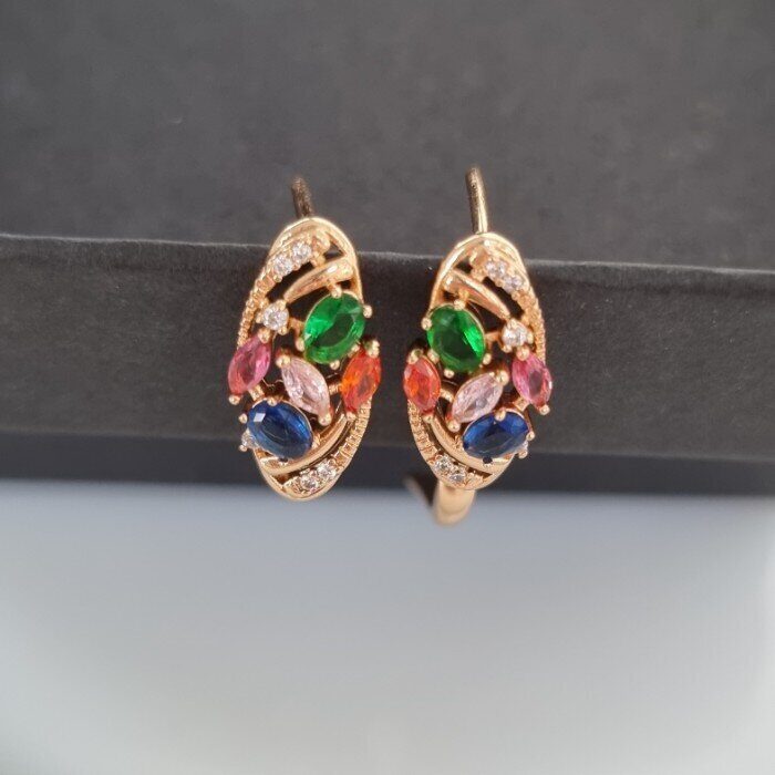 Серьги ювелирная бижутерия коллекция "Дубай" позолота, вставка фианиты разноцветные,07520, арт.001.529