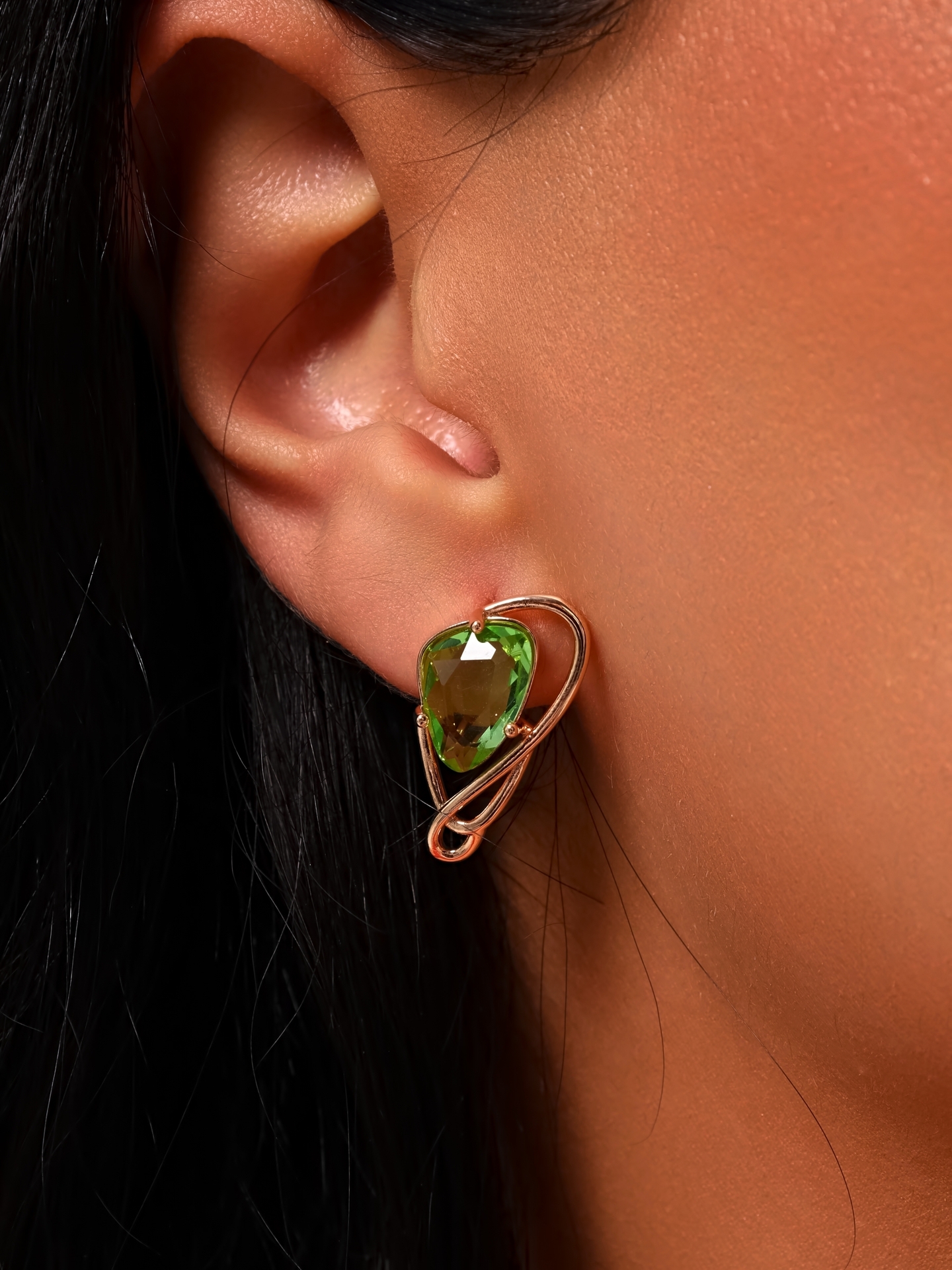 Серьги ювелирная бижутерия коллекция "Дубай" с крупным камнем, покрытие позолота, цвет: бледо-зеленый, арт.314.441