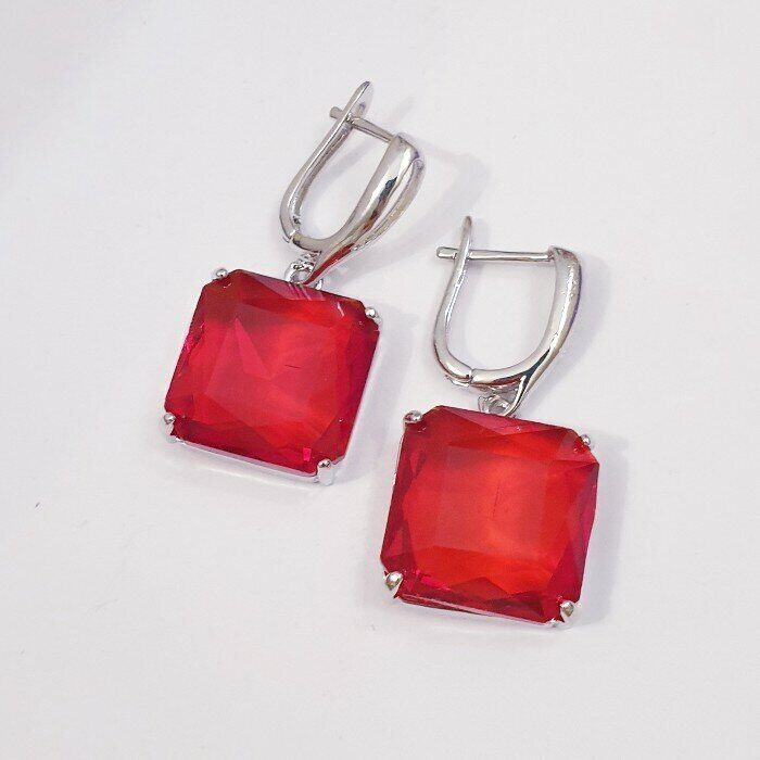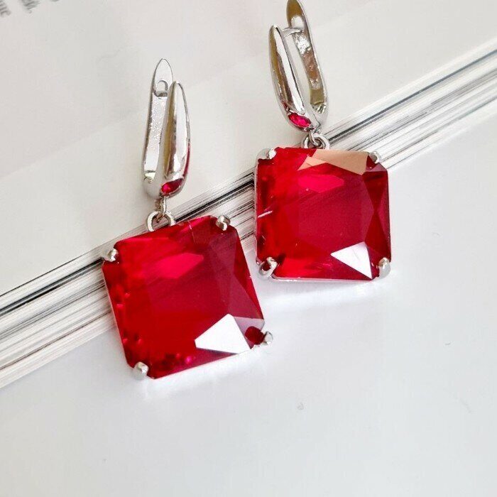 Серьги ювелирная бижутерия крупные под серебро, красный камень, 65145, арт.032.389