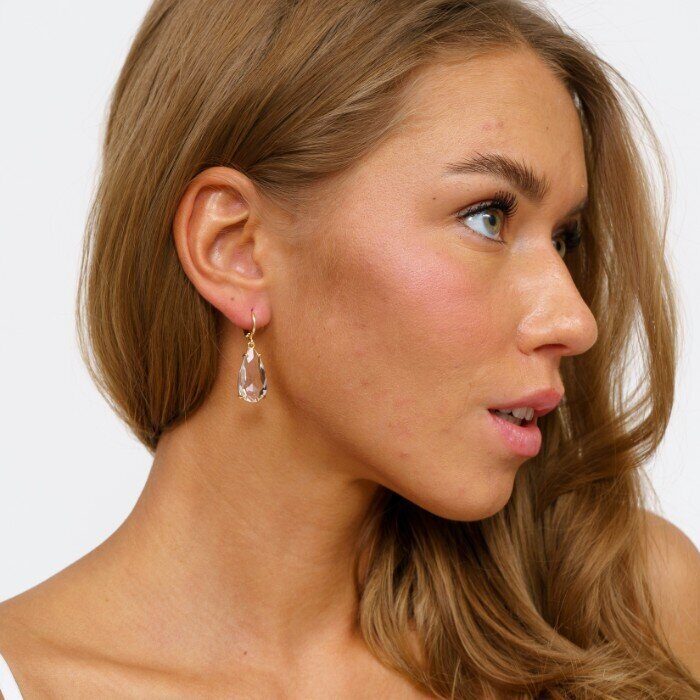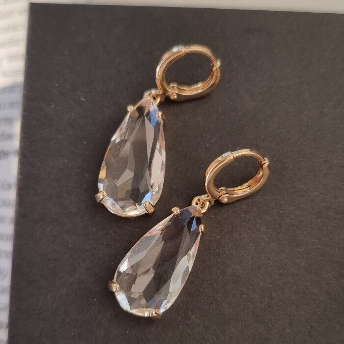 Серьги ювелирная бижутерия крупные под золото, прозрачный камень, арт.001.560