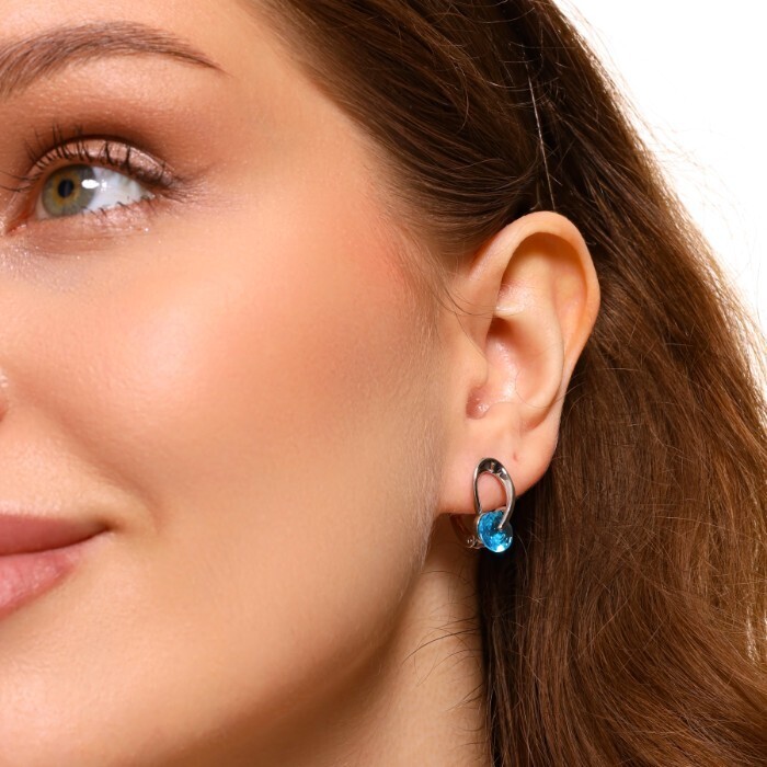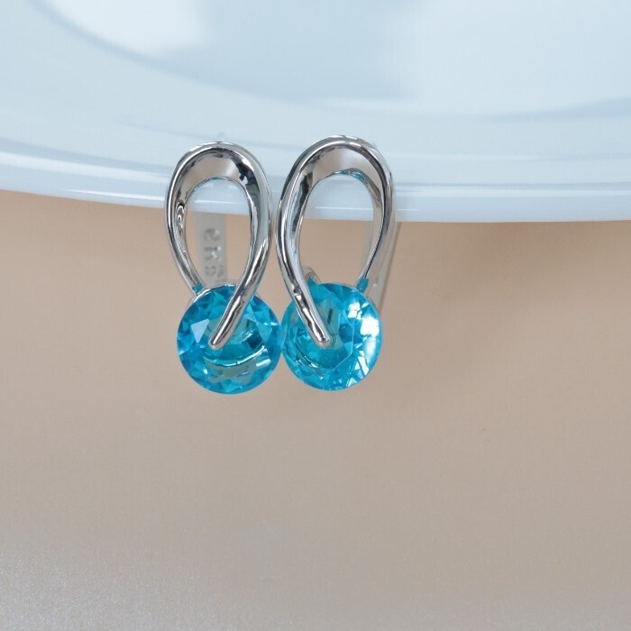Серьги ювелирная бижутерия покрытие посеребрение, вставка: фианиты, цвет: голубой, арт.314.306