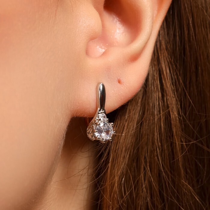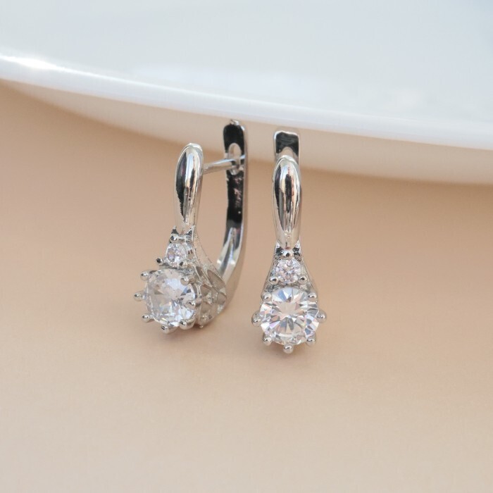 Серьги ювелирная бижутерия, покрытие посеребрение, вставка: фианиты, цвет: прозрачный, арт.213.573