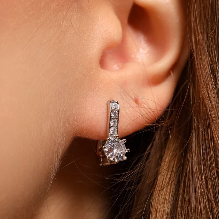 Серьги ювелирная бижутерия, покрытие посеребрение, вставка: фианиты, цвет: прозрачный, арт.213.596