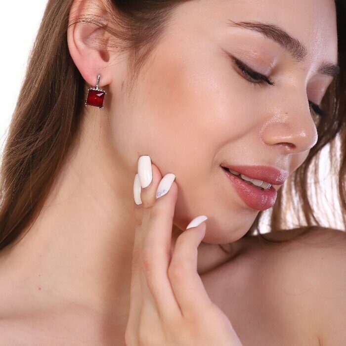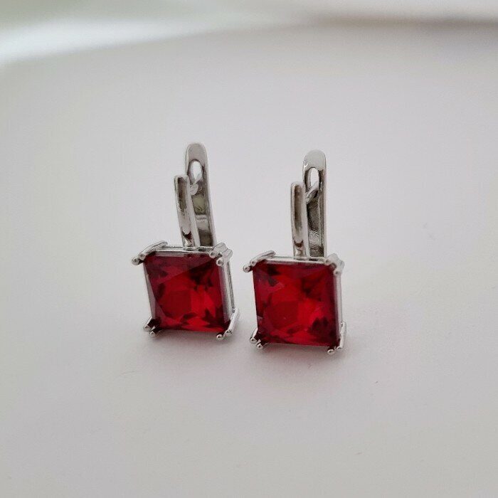 Серьги ювелирная бижутерия посеребрение, фианит красного цвета, арт. 947.158