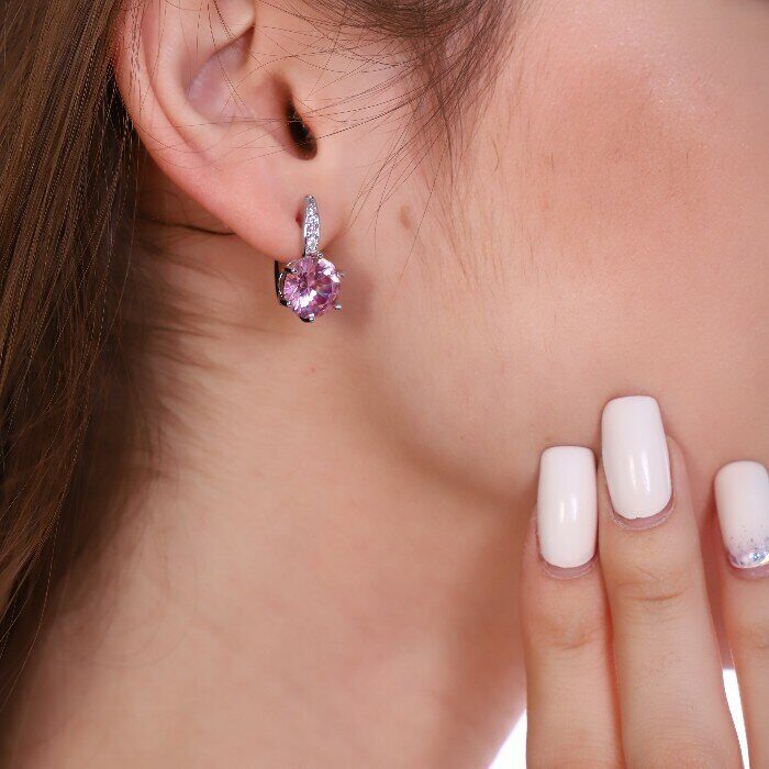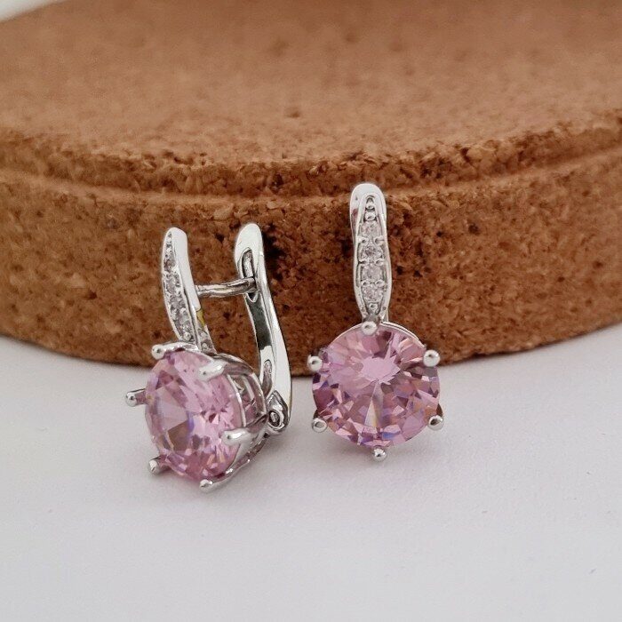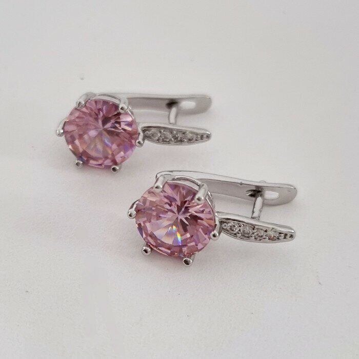 Серьги ювелирная бижутерия посеребрение, фианит розового цвета, арт. 947.139