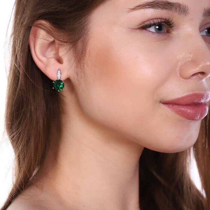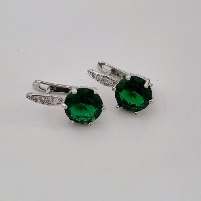Серьги ювелирная бижутерия посеребрение, фианит зеленого цвета, арт. 947.144