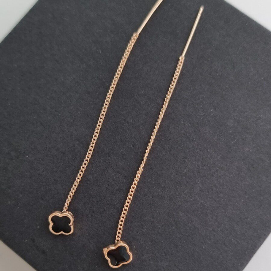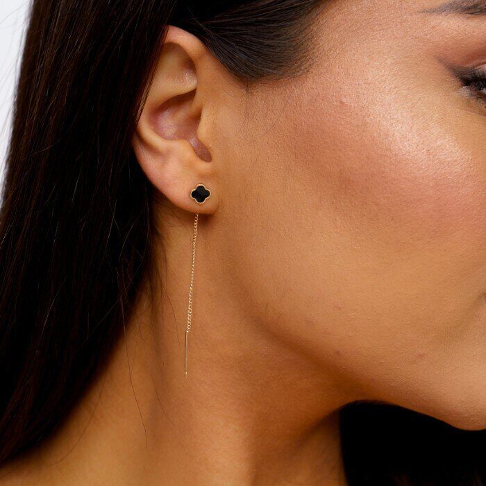 Серьги ювелирная бижутерия протяжки клевер коллекция "Дубай" , покрытие: позолота, вставка: эмаль, цвет: черный, арт.214.463