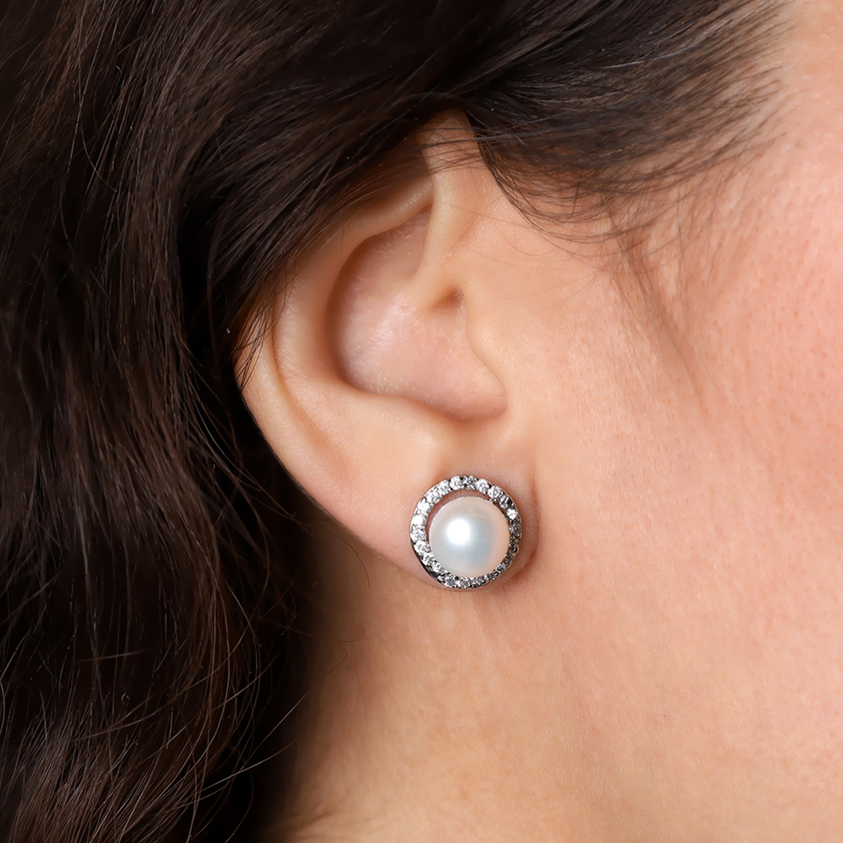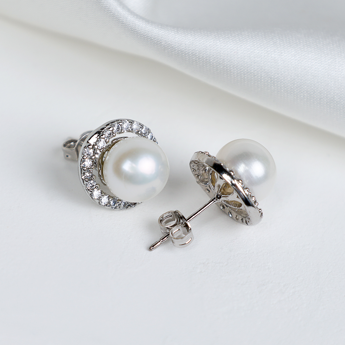 Серьги Жемчуг белый стразы / Р-23 /уп 36/