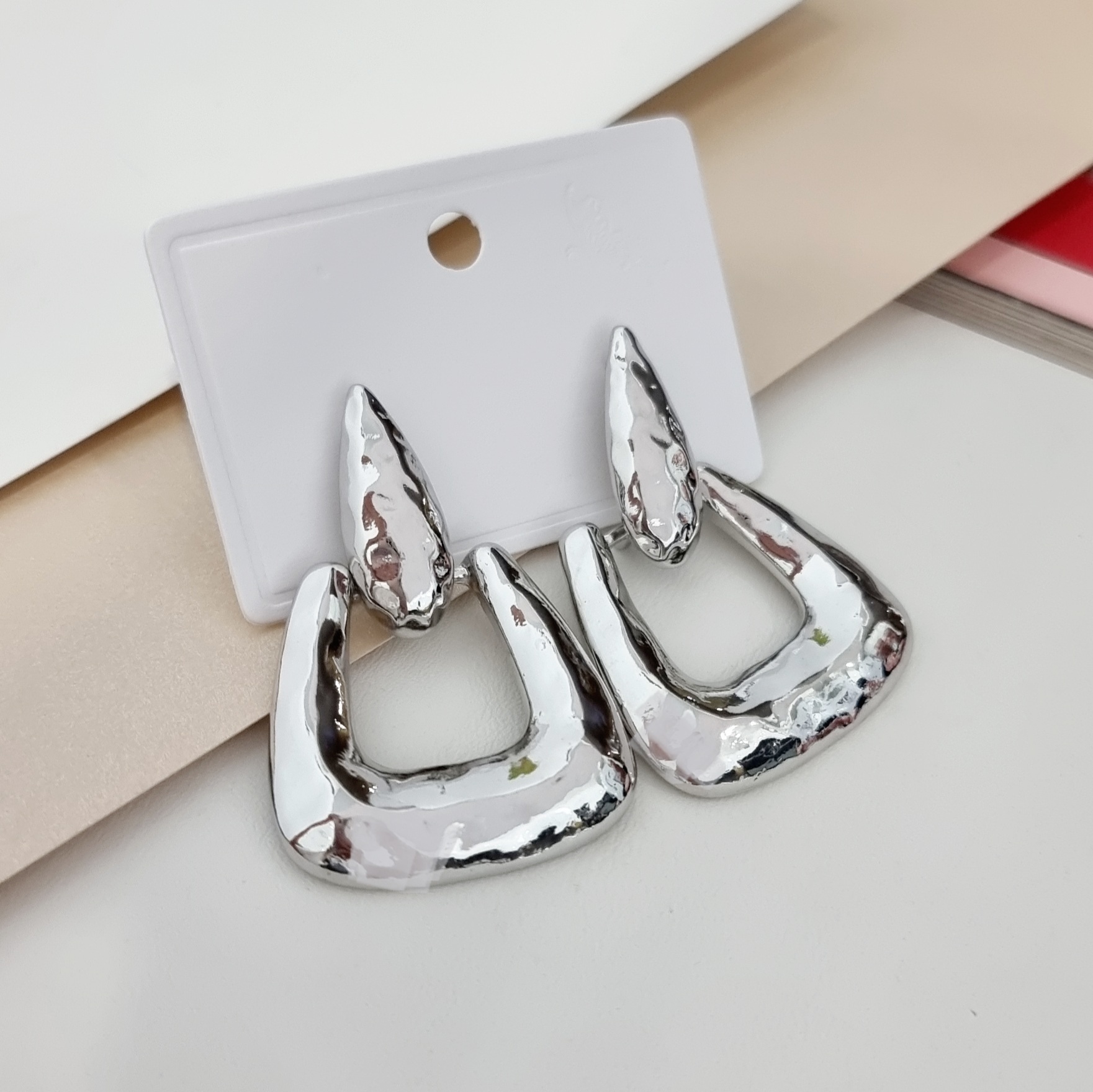 Описание Состав: пластик, металл, бижутерный сплав. Замок гвоздик. Размер сережек: 5* 3.8 см. Вес: 22 г.