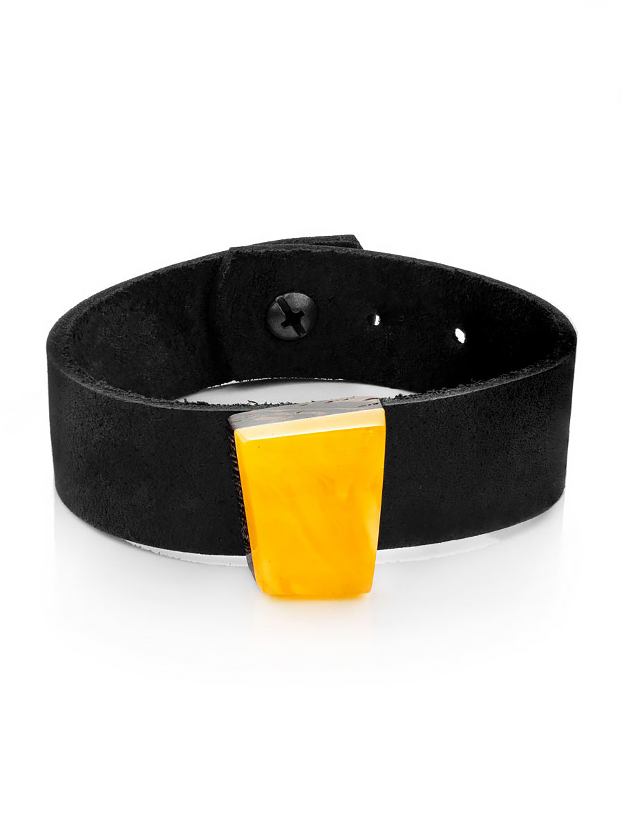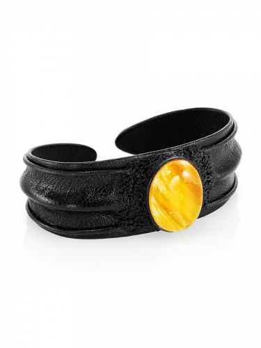 Широкий кожаный браслет «Индонезия» с натуральным янтарём и деревом