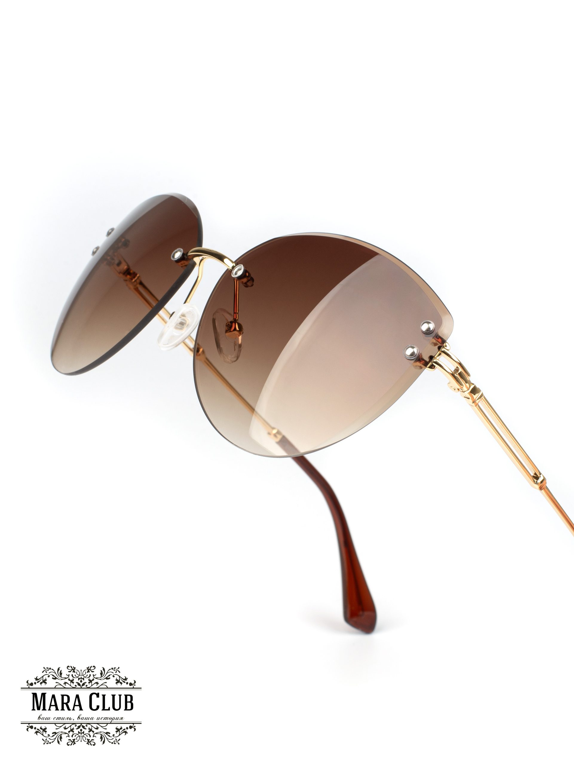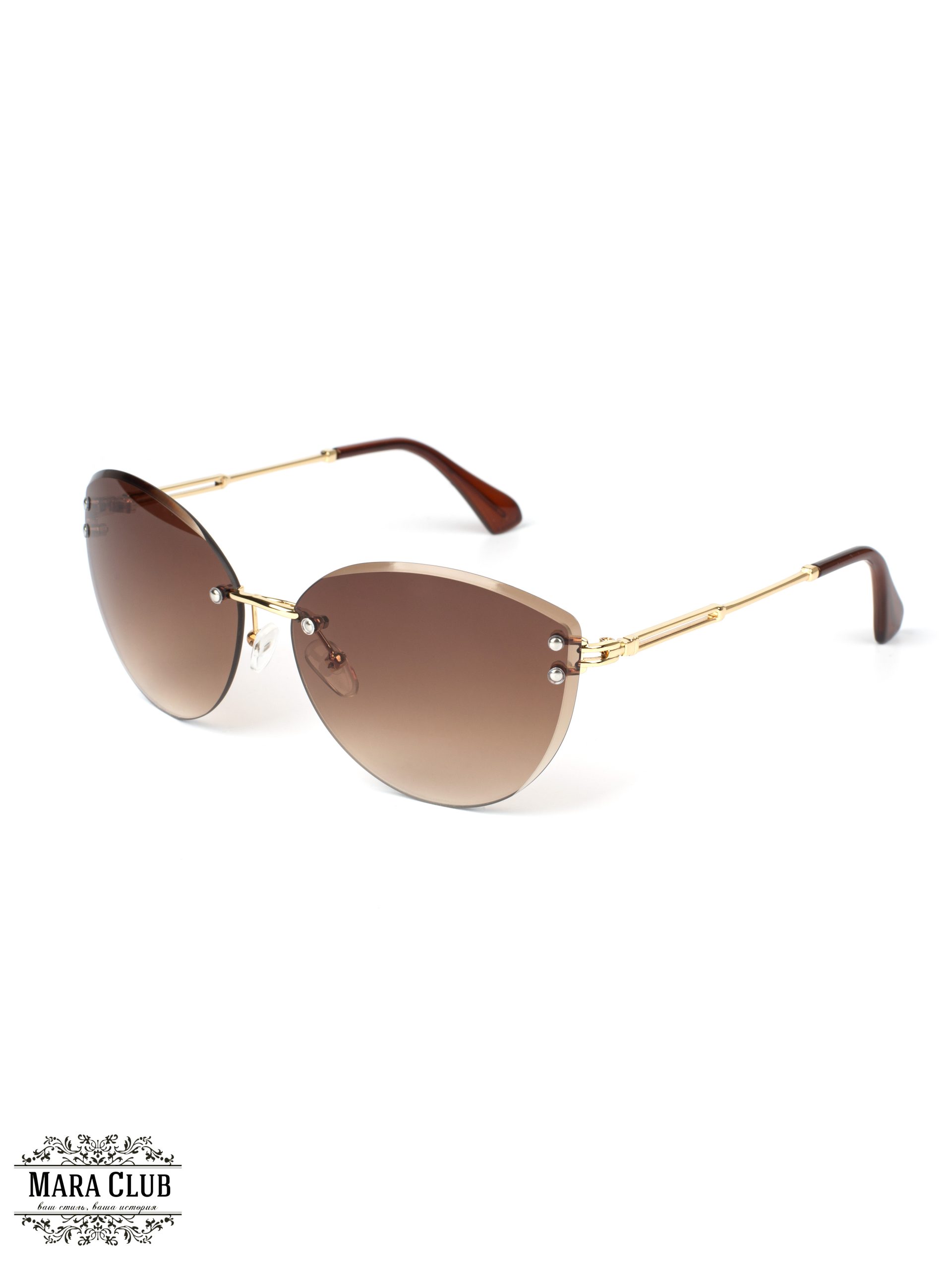 Коричневый, золотистый : Длина оправы 140 мм, высота оправы 50 мм, длина моста 15 мм, длина линзы 62 мм, длина дужки 143 мм Состав пластик, металл