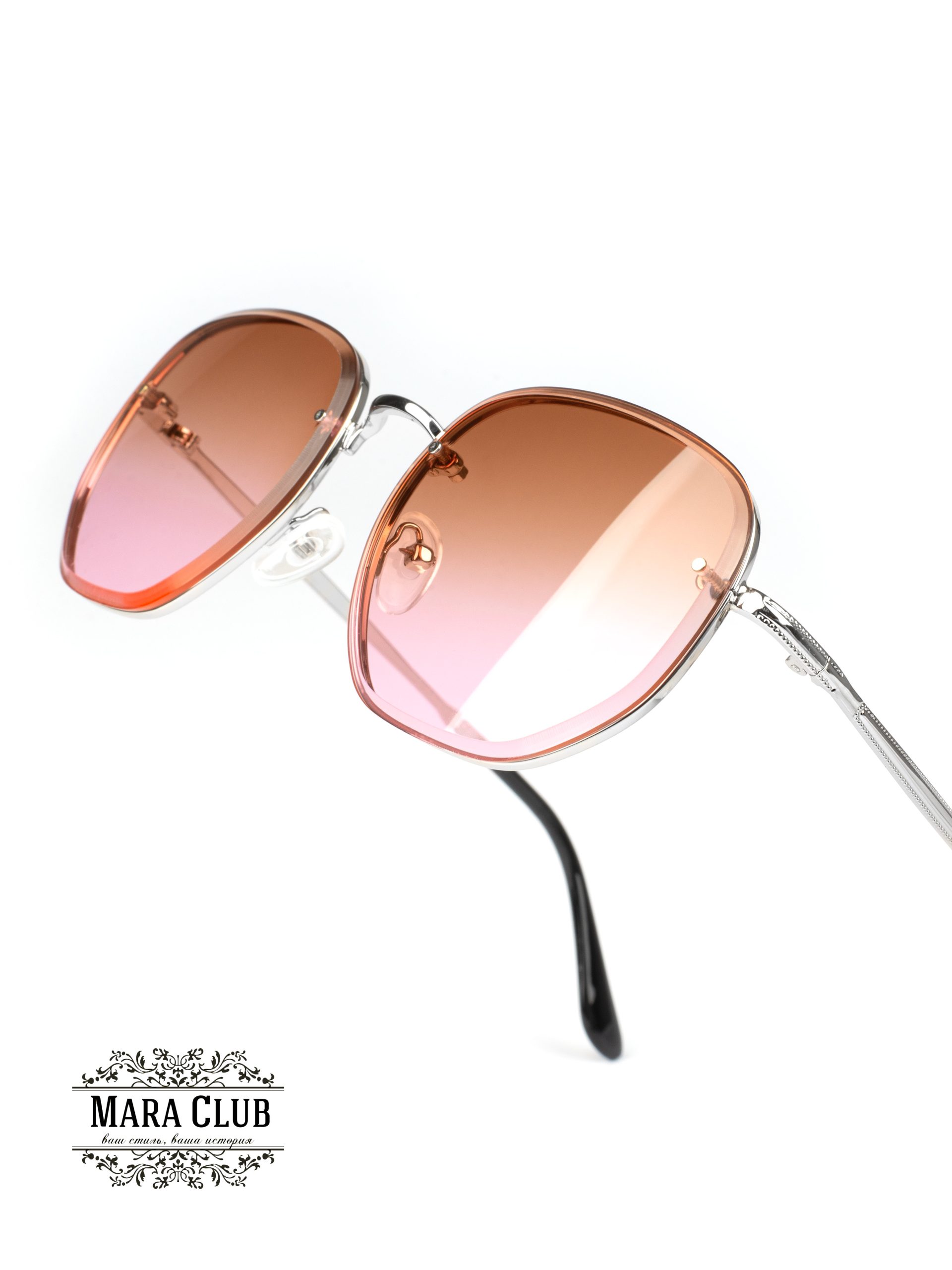 Розовый, серебристый: Длина оправы 130 мм, высота оправы 47 мм, длина моста 20 мм, длина линзы 55 мм, длина дужки 140 мм Состав: пластик, металл