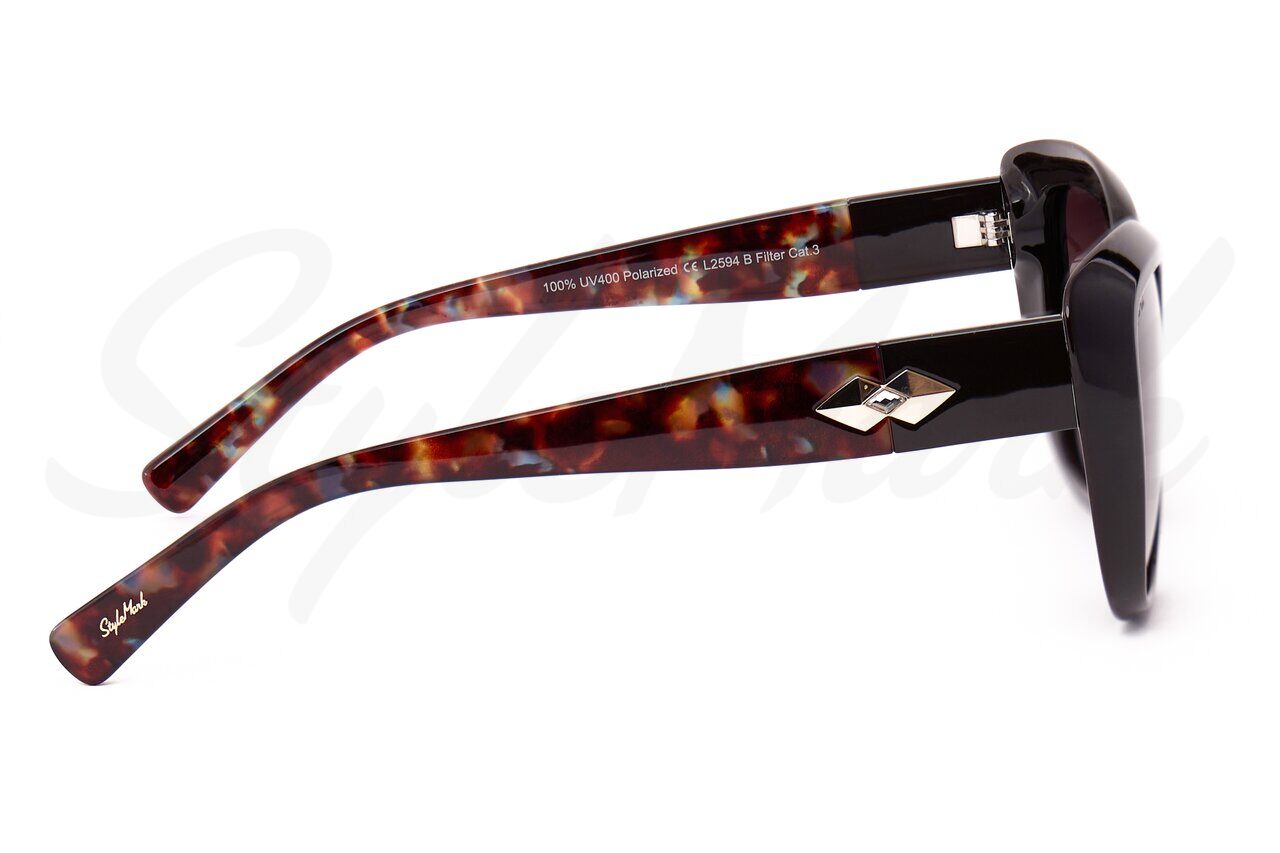 Особенности оправы и заушников гипоаллергенные материалы, декоративная вставка на заушниках металлическая с прозрачным кристаллом, логотип на окончаниях заушников