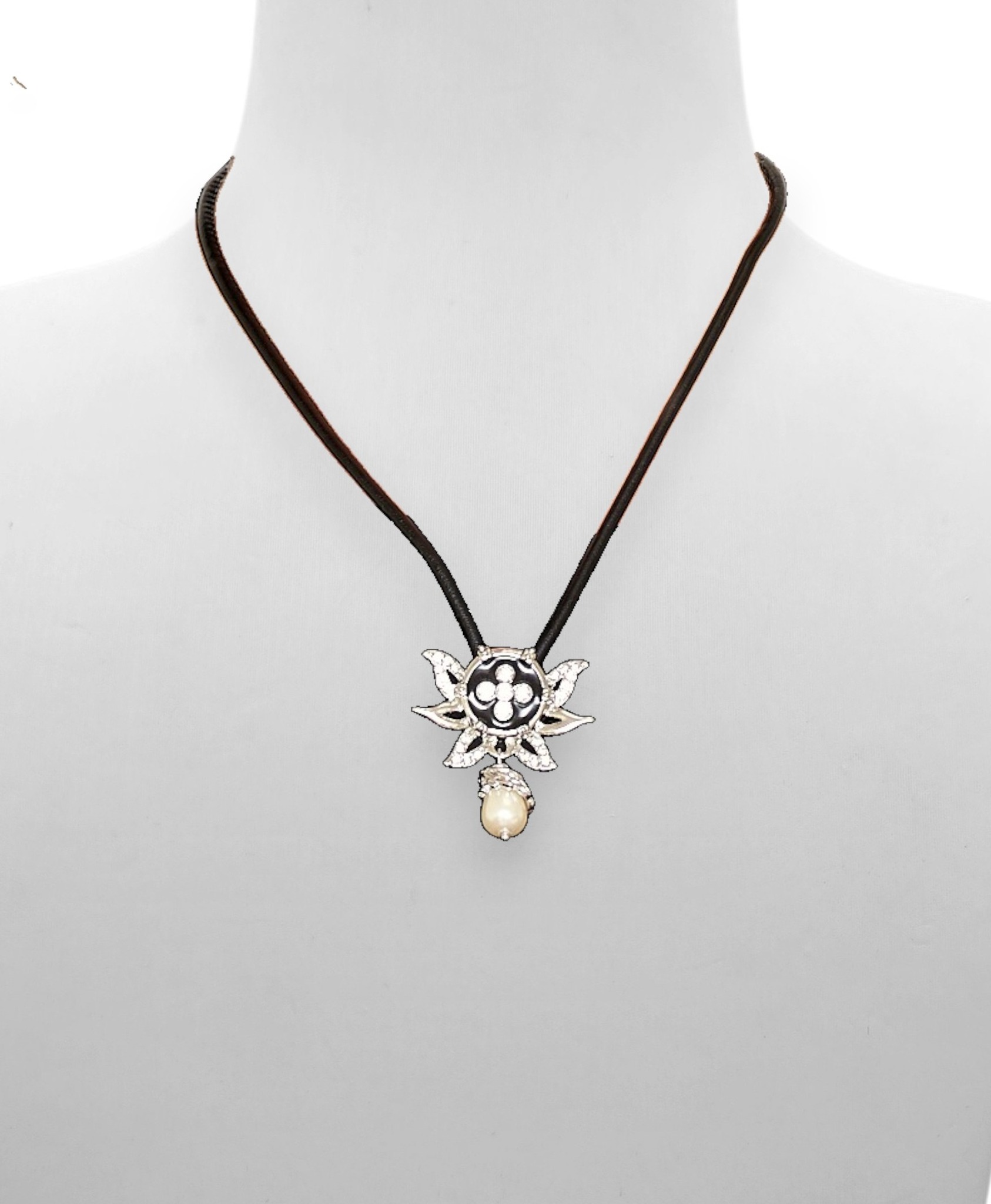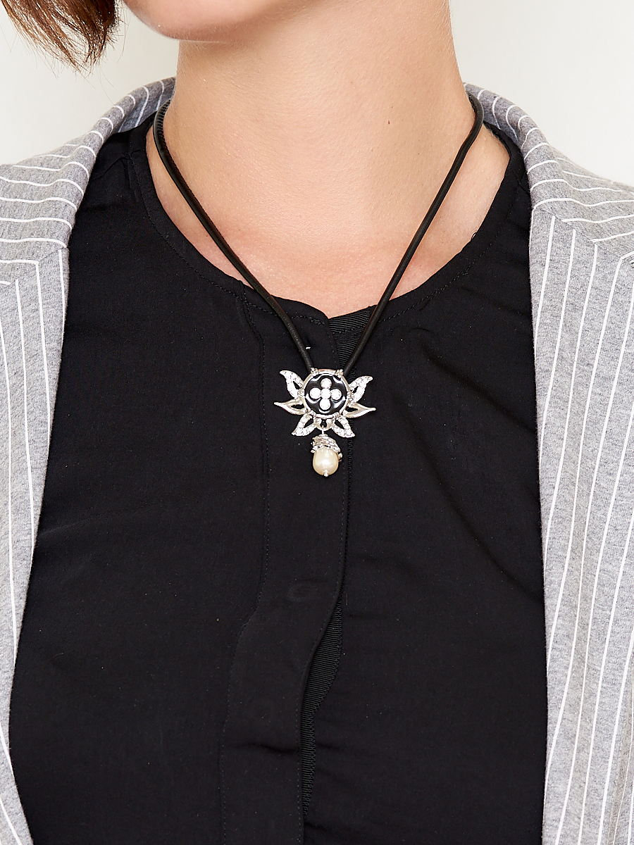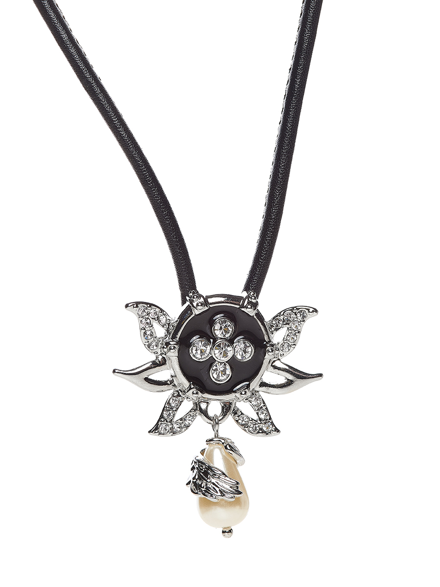 Кристаллы Preciosa, эмаль, искусственный жемчуг, экокожа, латунь. Гальваническое покрытие: родий.