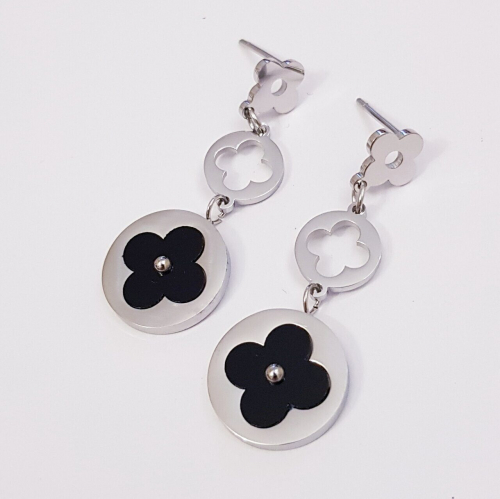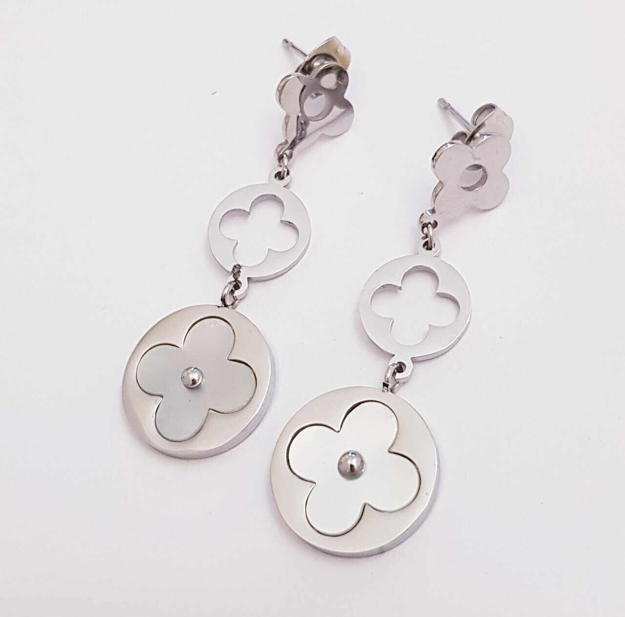 Стальные серьги-пусеты с перламутровой вставкой, цвет серебряный, арт. 411.467