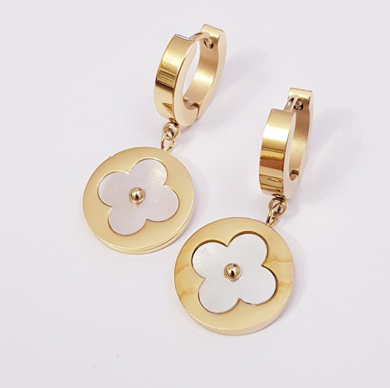 Стальные серьги с перламутровой вставкой, цвет золотой, арт. 411.478