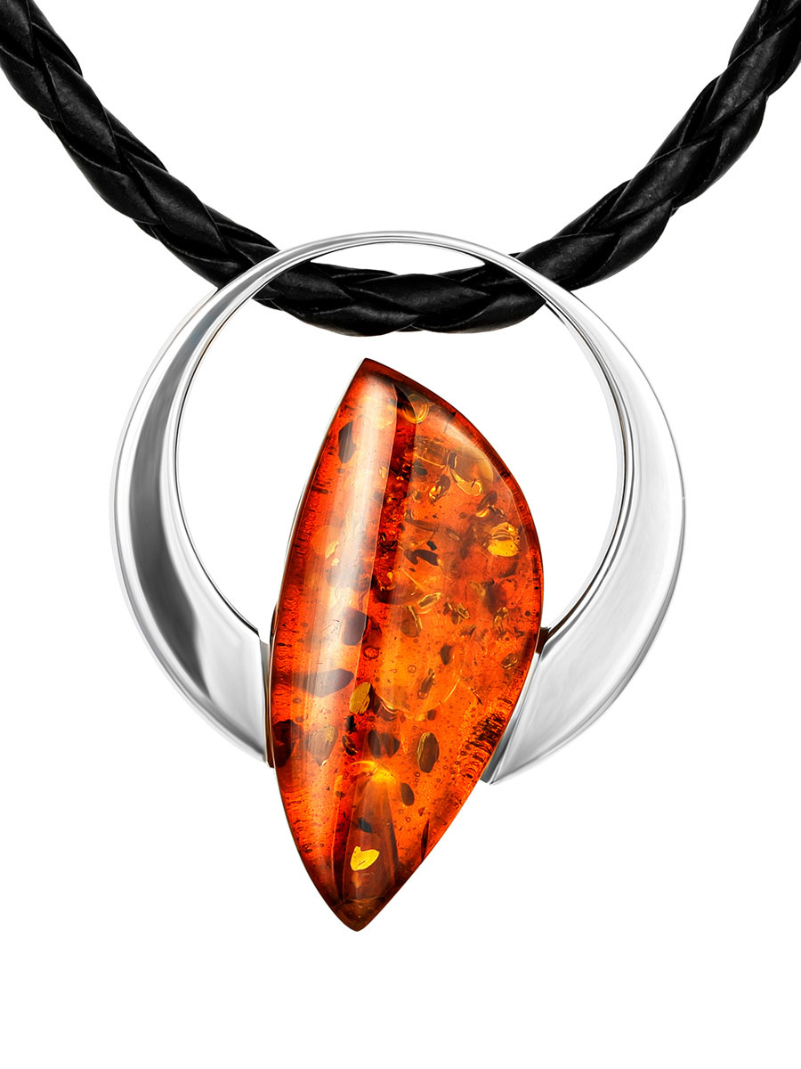 Стильная необычная подвеска «Самум» с натуральным искрящимся янтарём