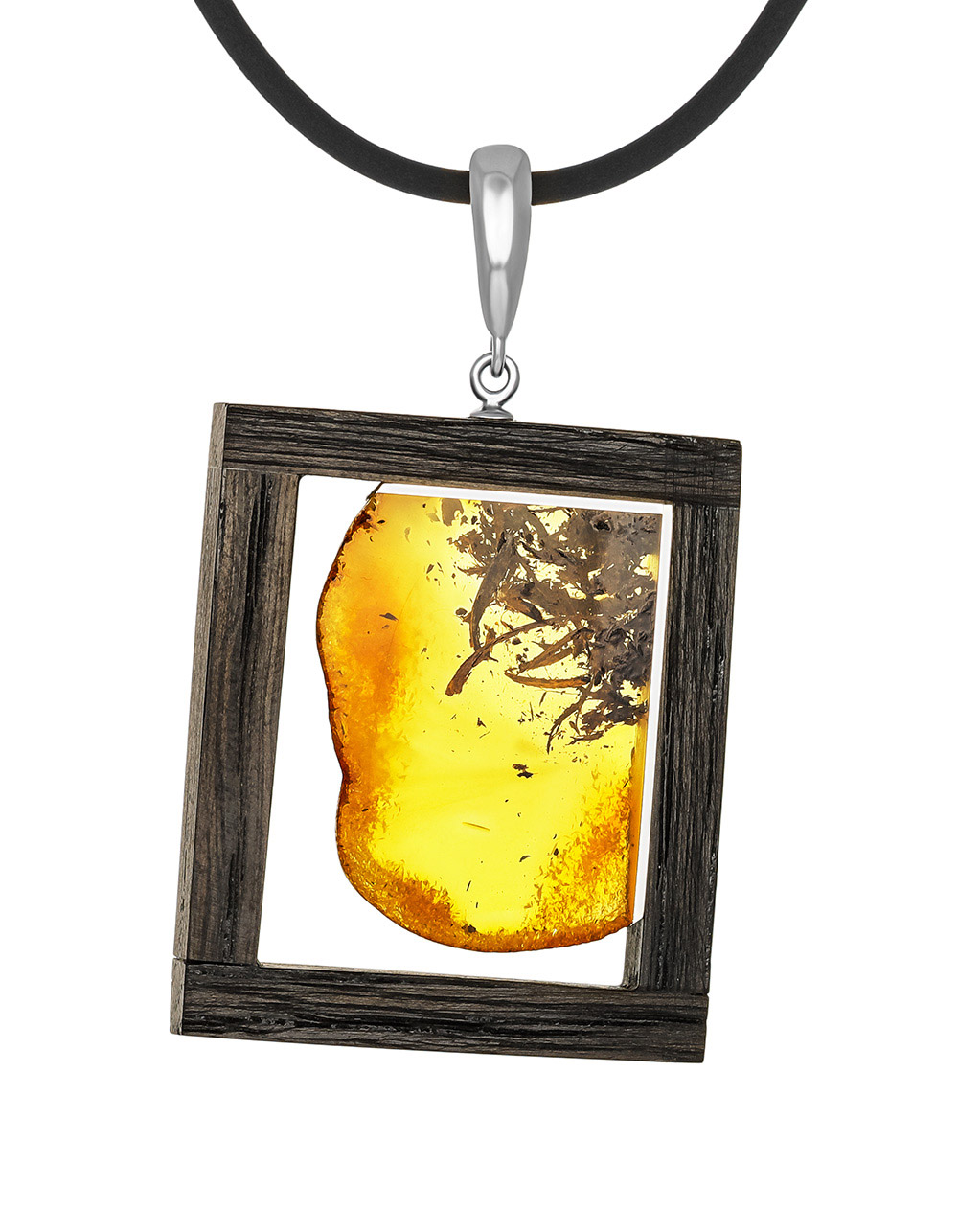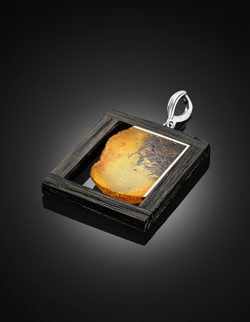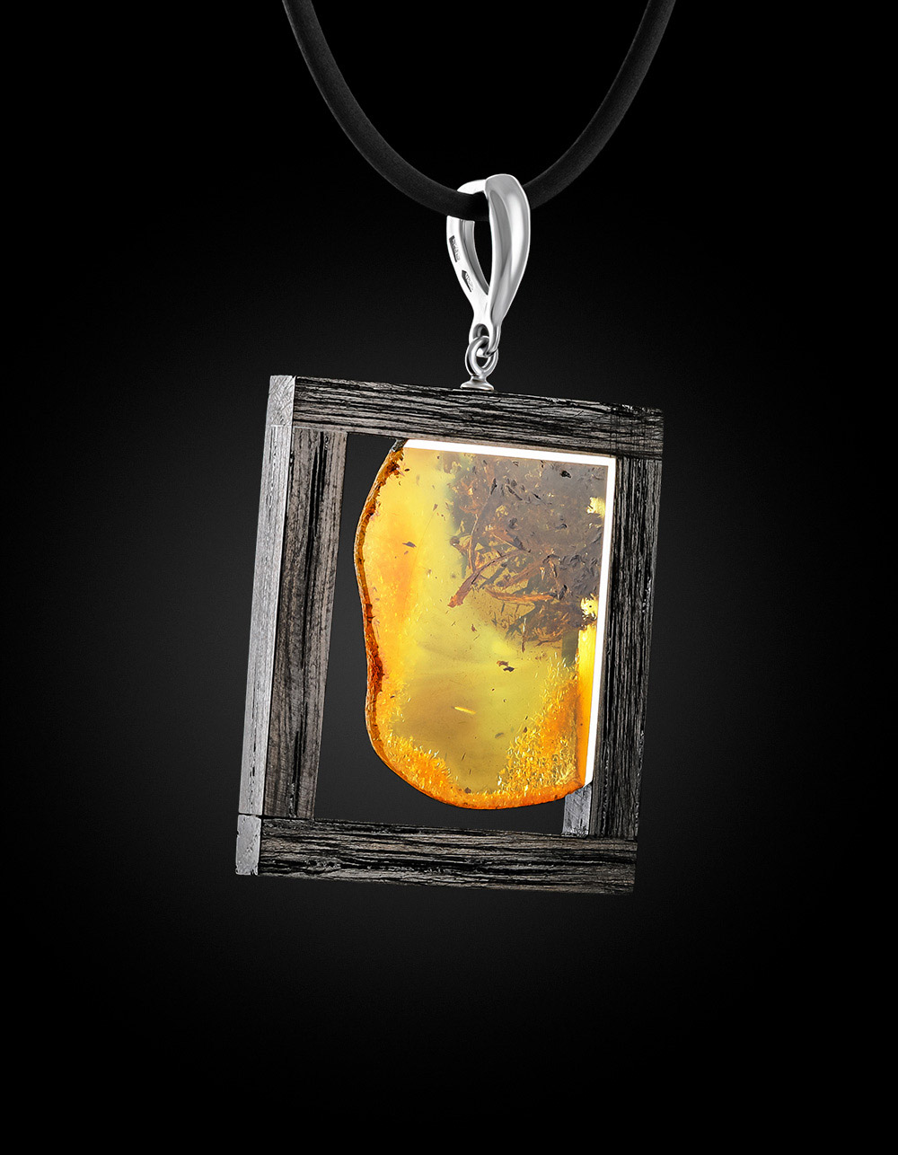 Стильная подвеска из натурального янтаря и древесины «Индонезия»