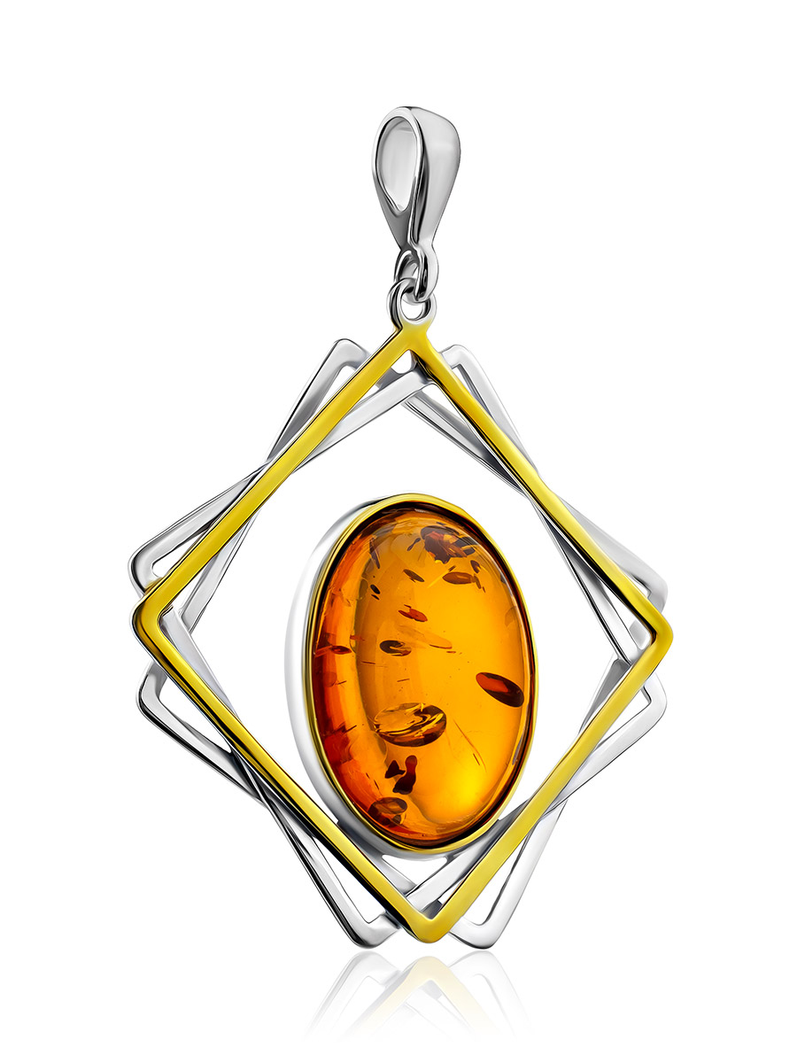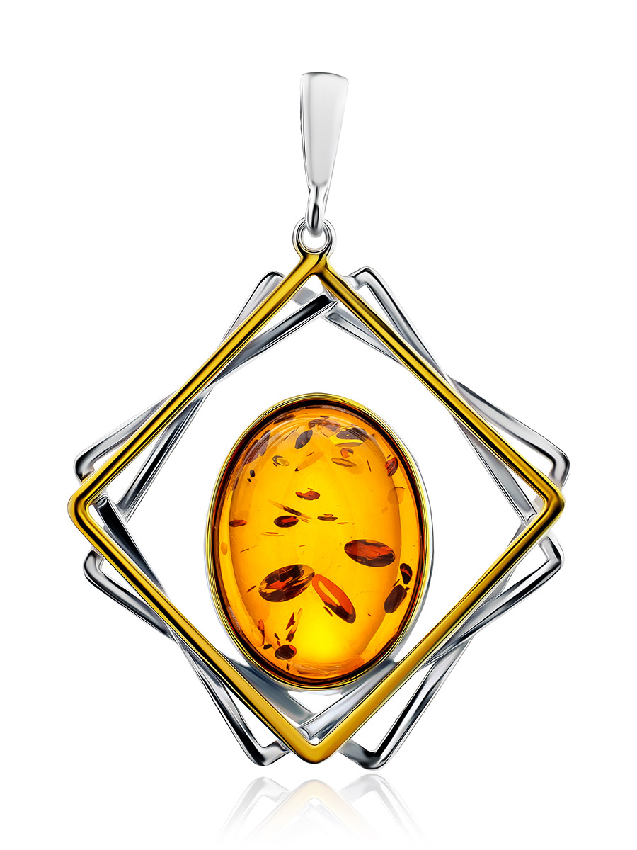 Стильная подвеска с янтарём в геометрическом дизайне «Амплитуда»