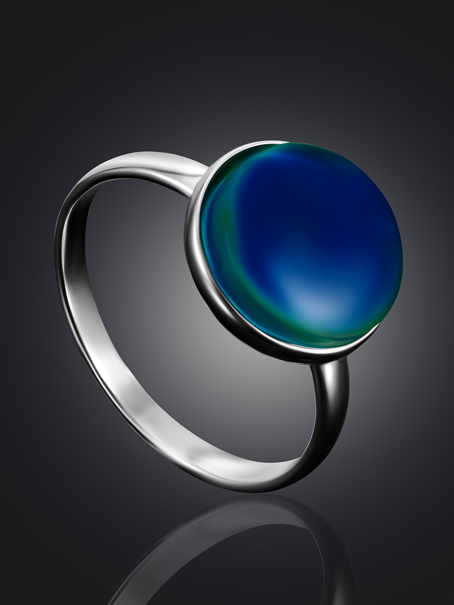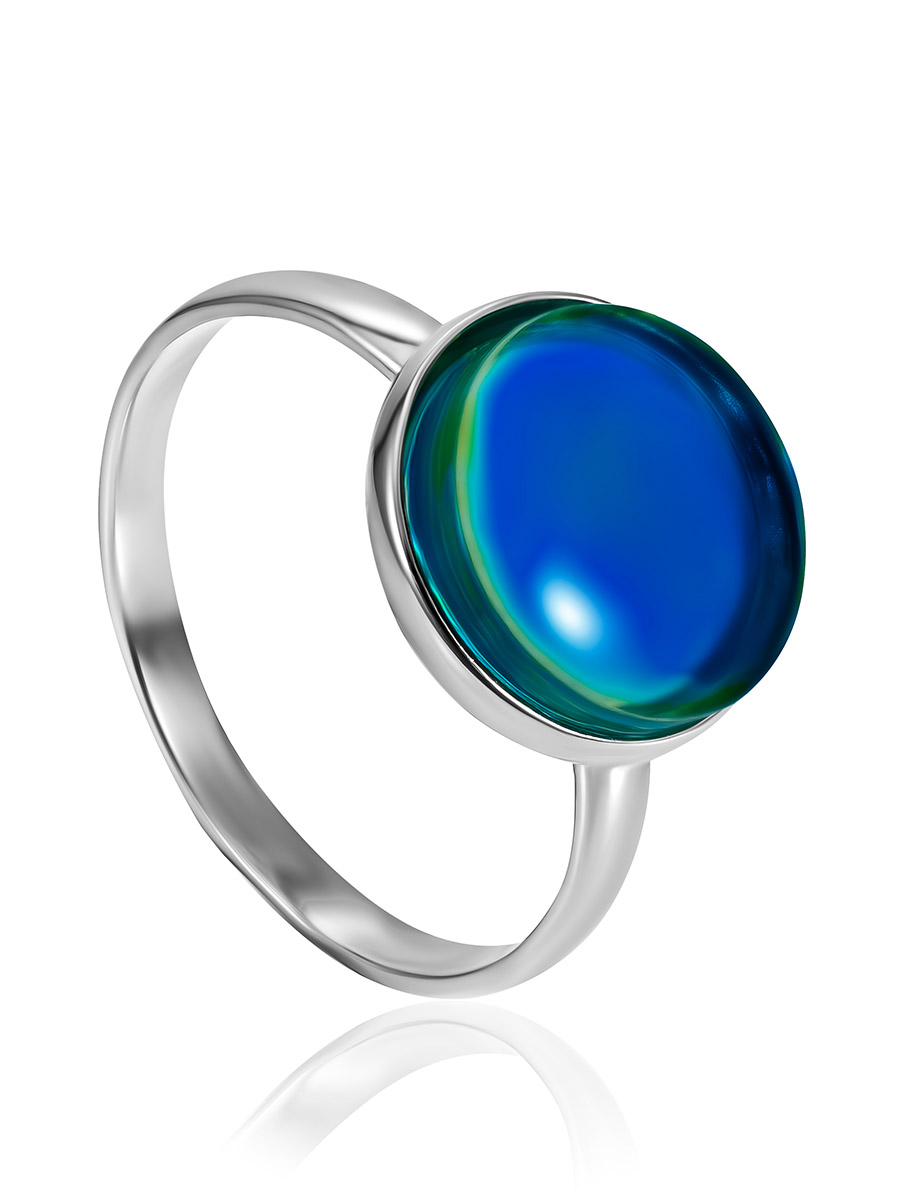 Стильное эффектное кольцо «Фурор» с янтарём синего цвета