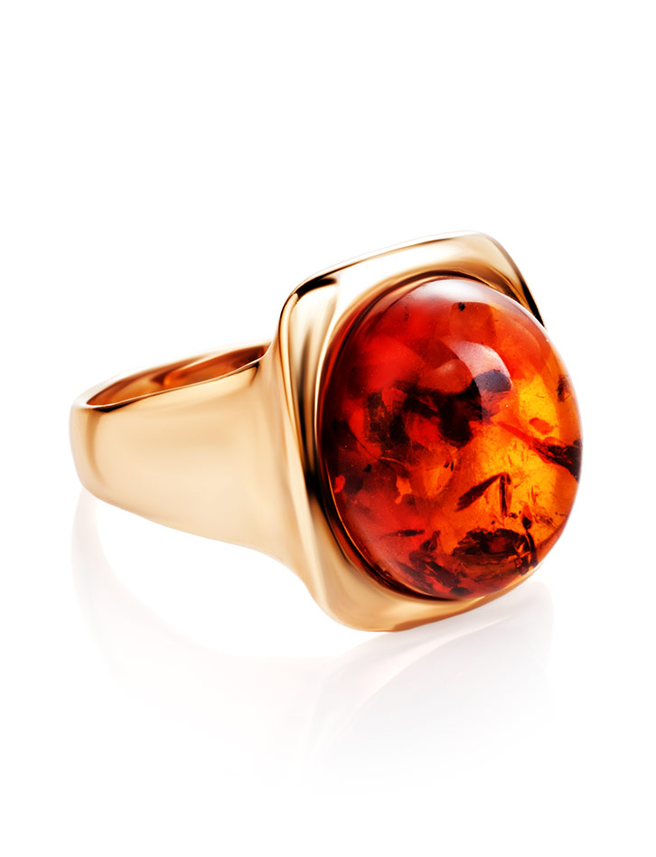 Стильное кольцо «Эллипс крупный» из коньячного янтаря