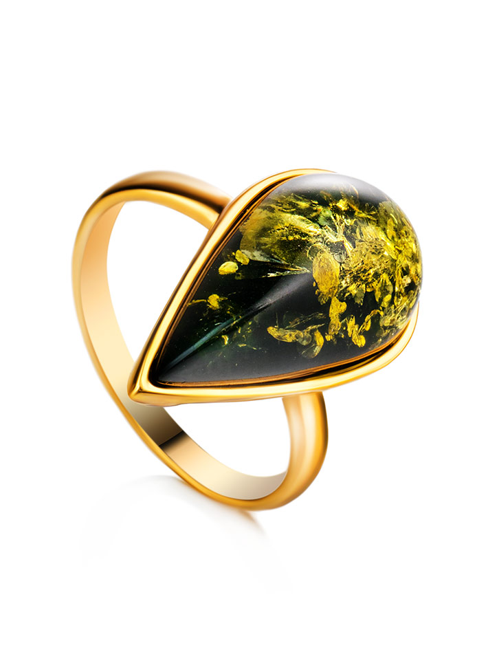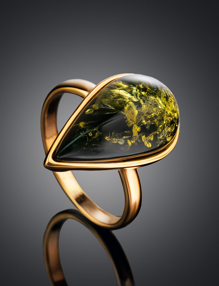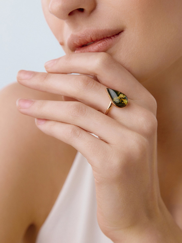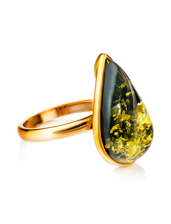 Стильное кольцо «Импульс» из цельного зелёного янтаря