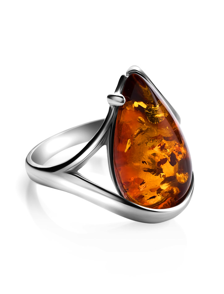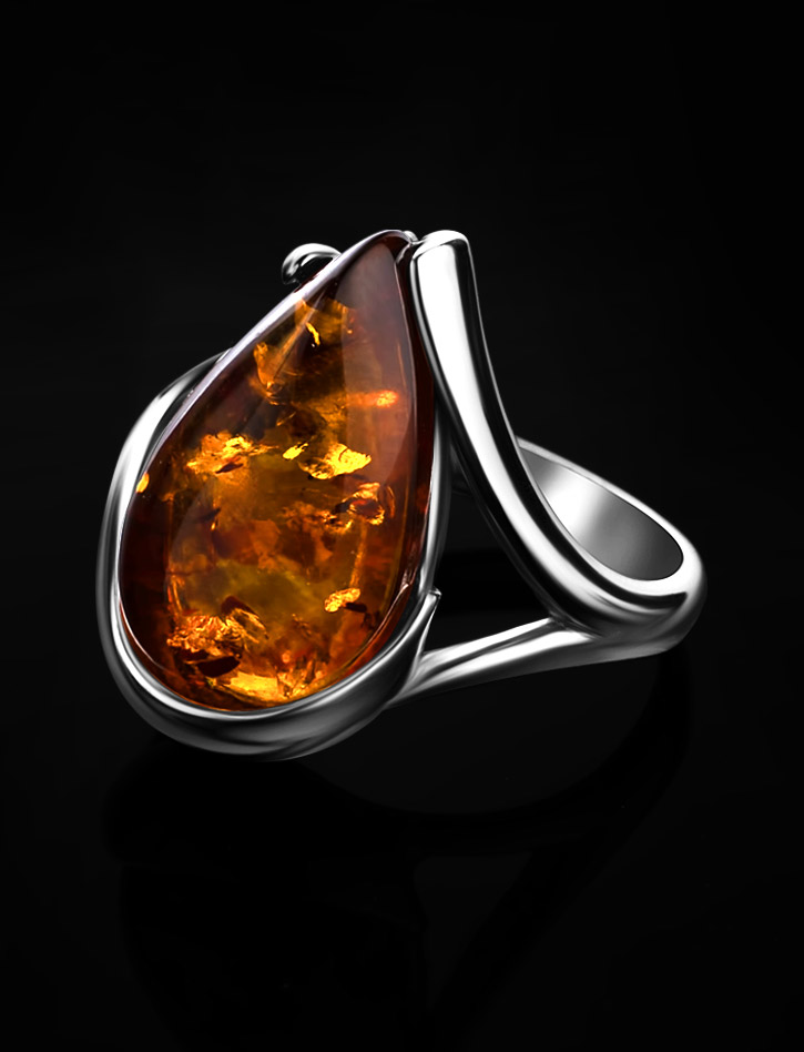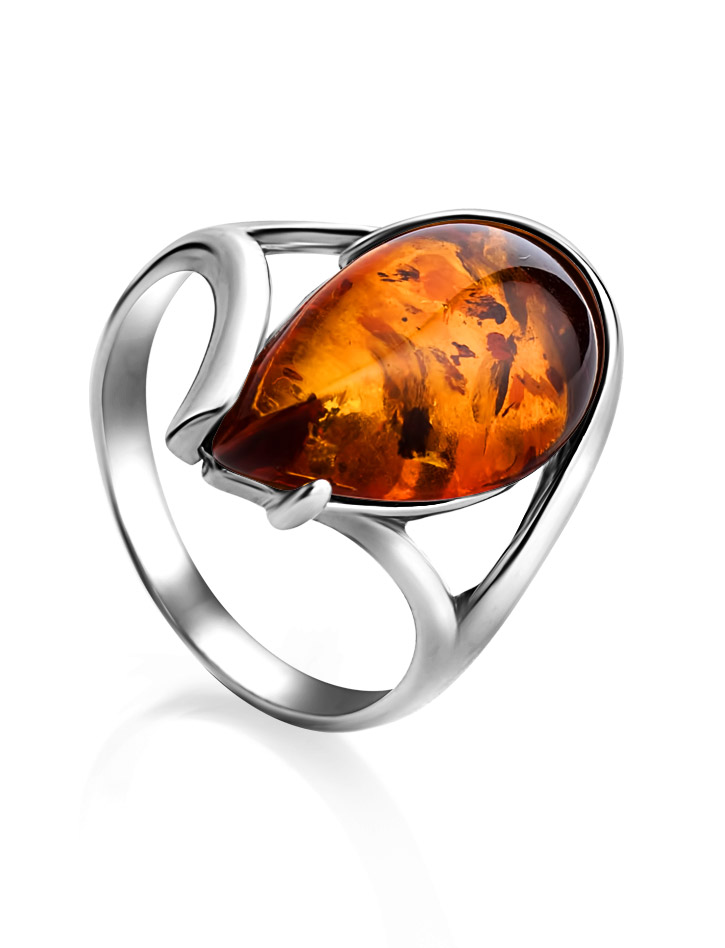 Стильное кольцо из натурального янтаря коньячного цвета «Джоконда»