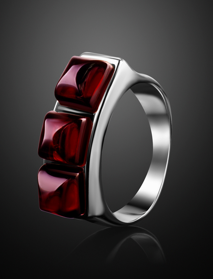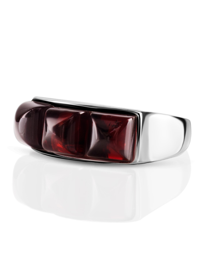 Стильное кольцо из вишнёвого янтаря «Мозаика»