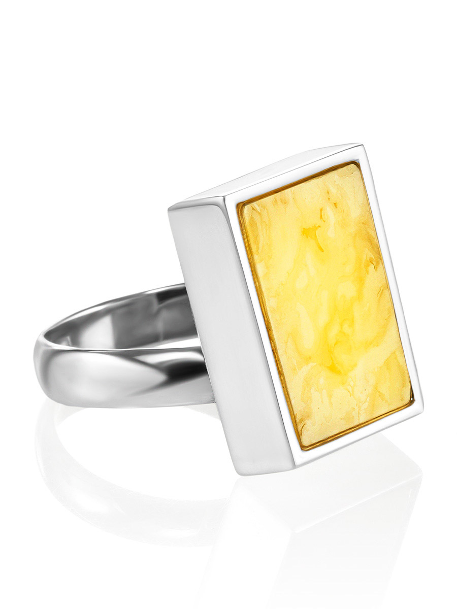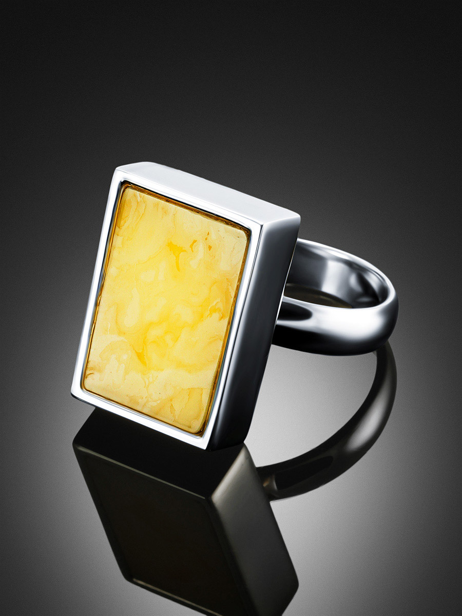 Стильное кольцо прямоугольной формы с натуральным янтарём Palazzo