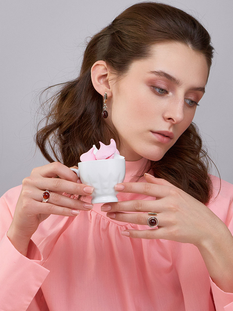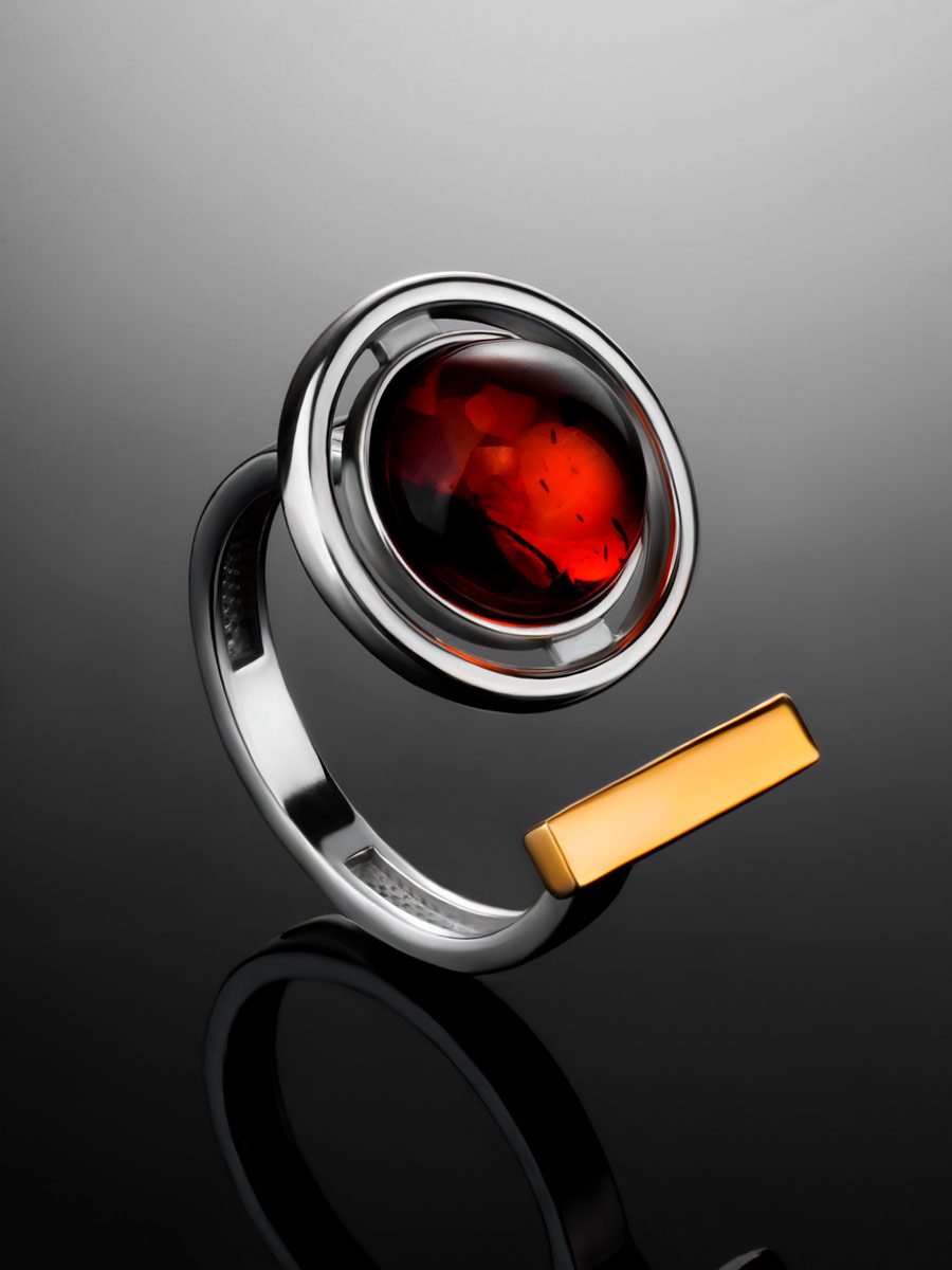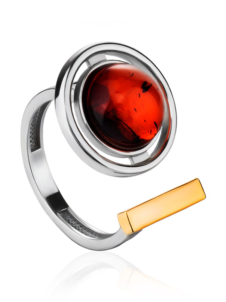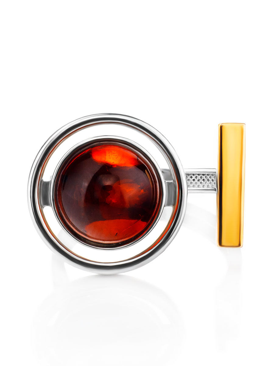 Стильное кольцо с натуральным коньячным янтарём «Люмьер»