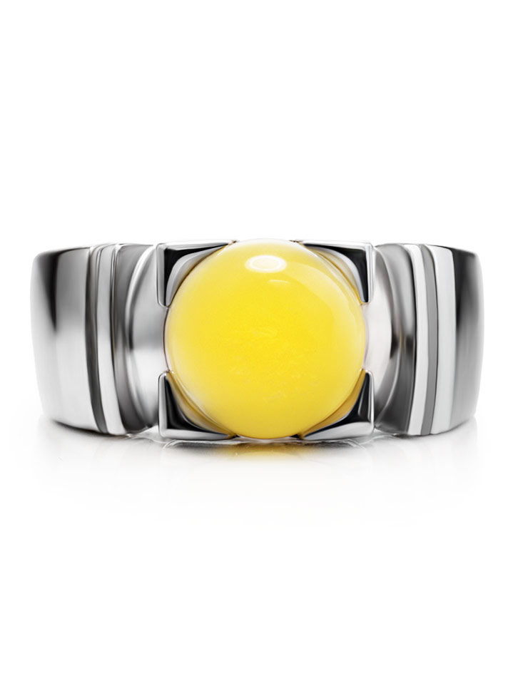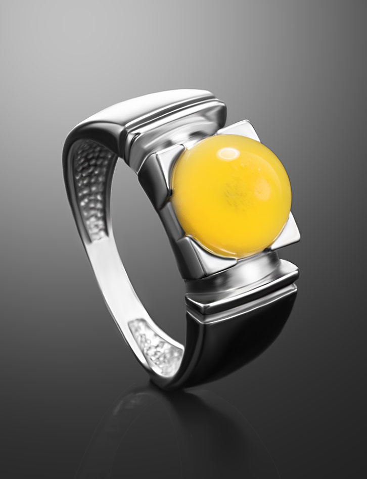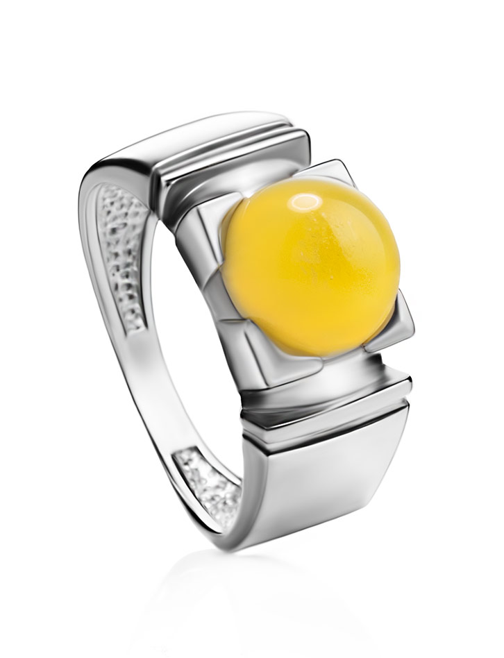 Стильное кольцо с янтарём медового цвета «Рондо»