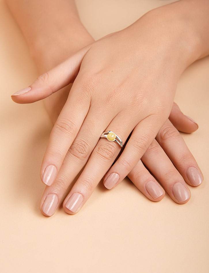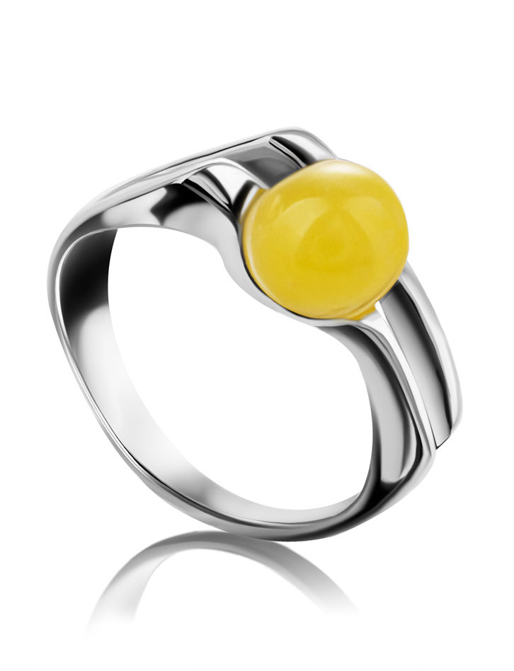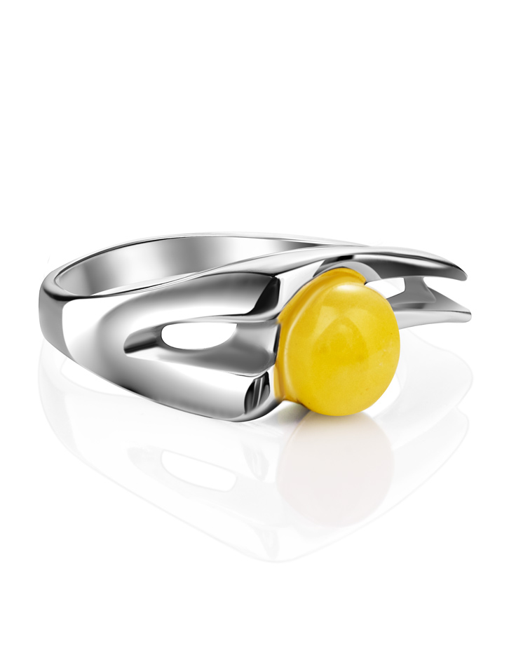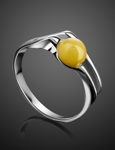 Стильное кольцо «Токио» с медовым янтарём
