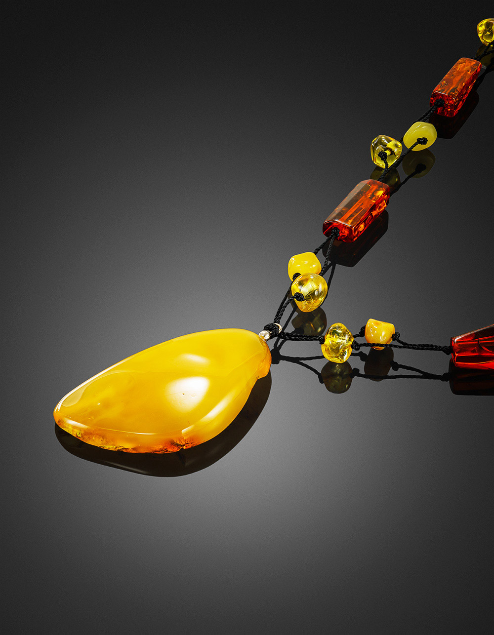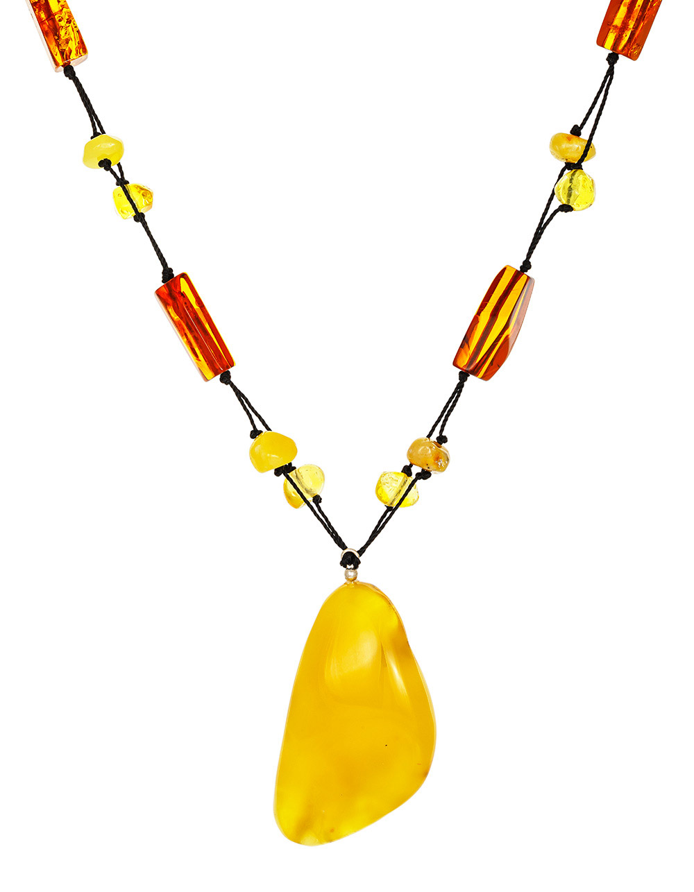 Стильное плетёное колье с крупной подвеской из натурального янтаря «Мадагаскар»