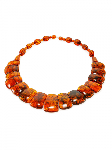 Стильное плоское колье из натурального балтийского янтаря коньячного цвета