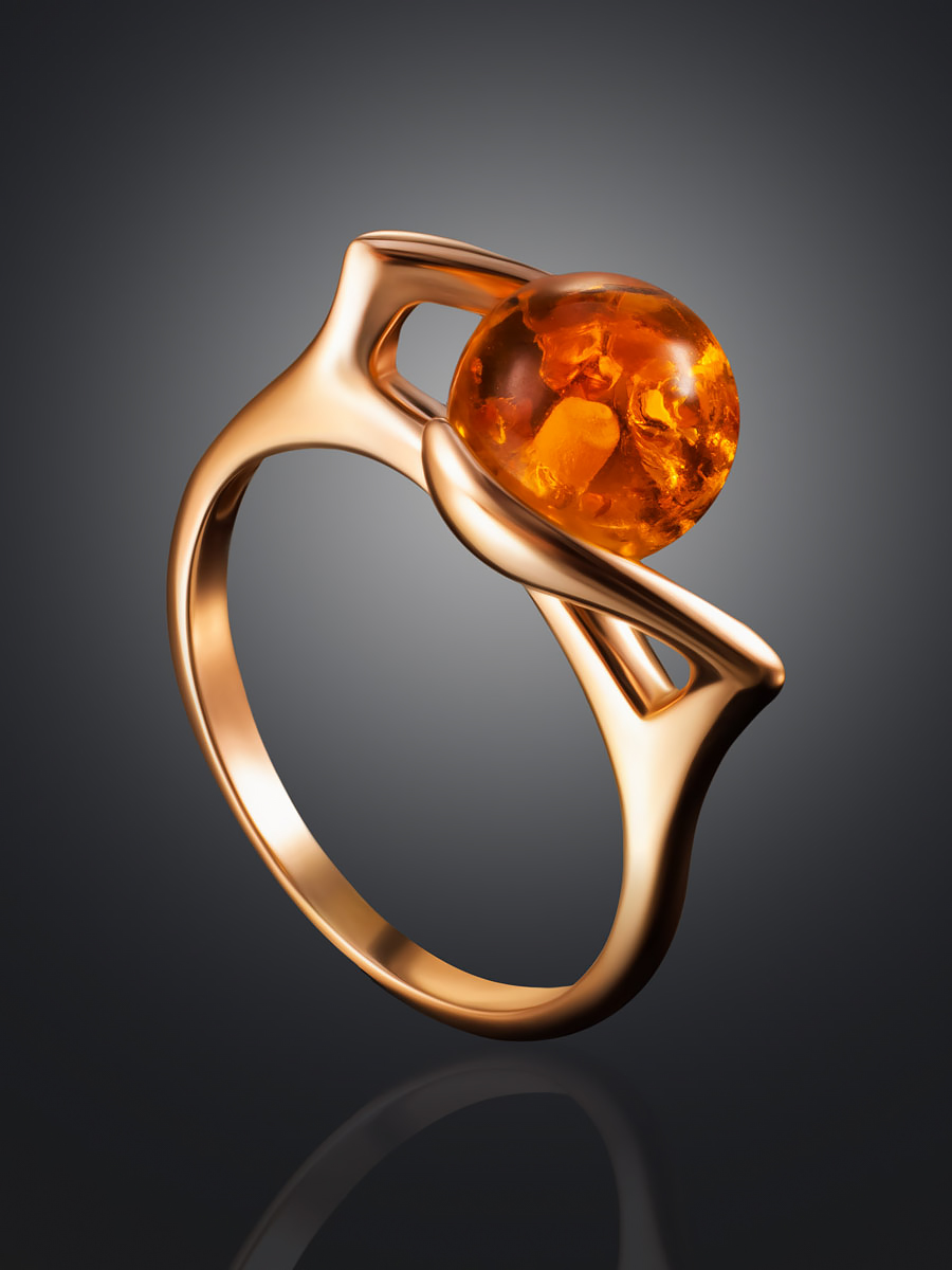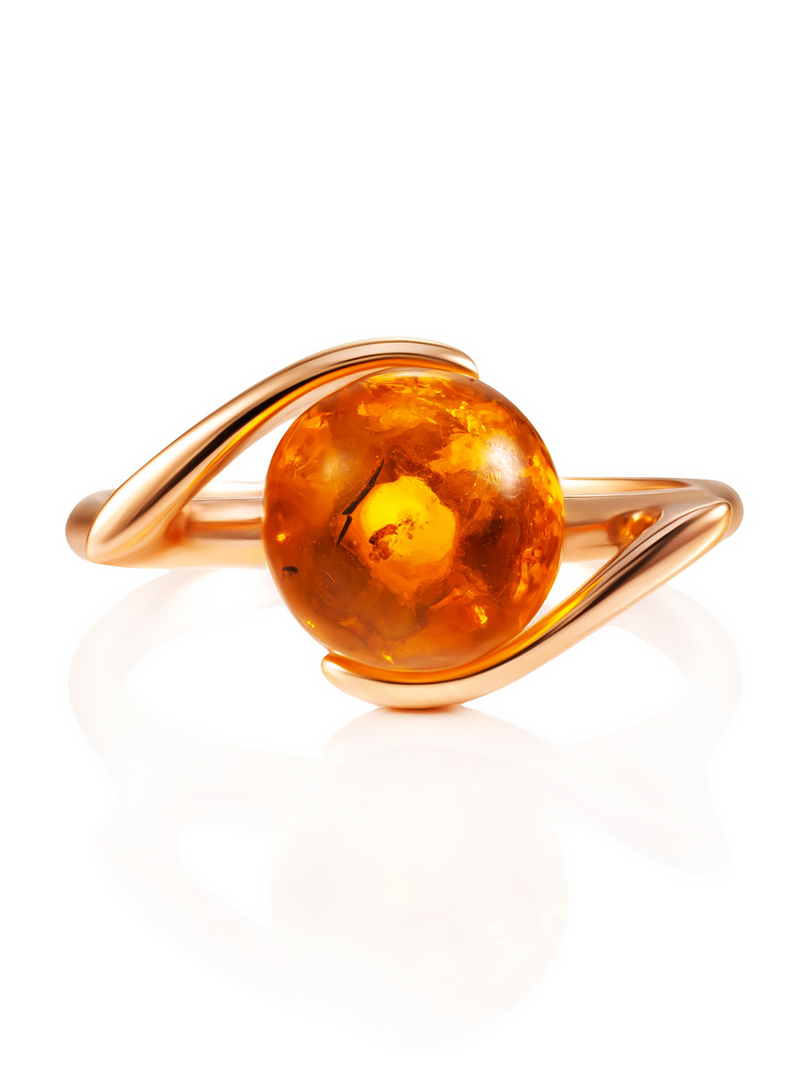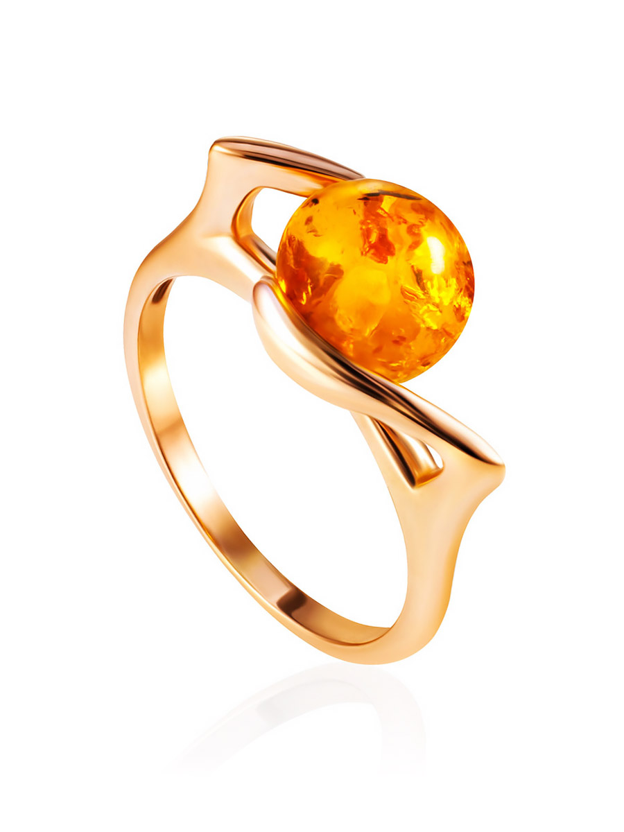 Стильное серебряное кольцо с позолотой, украшенное янтарём «Альдебаран»