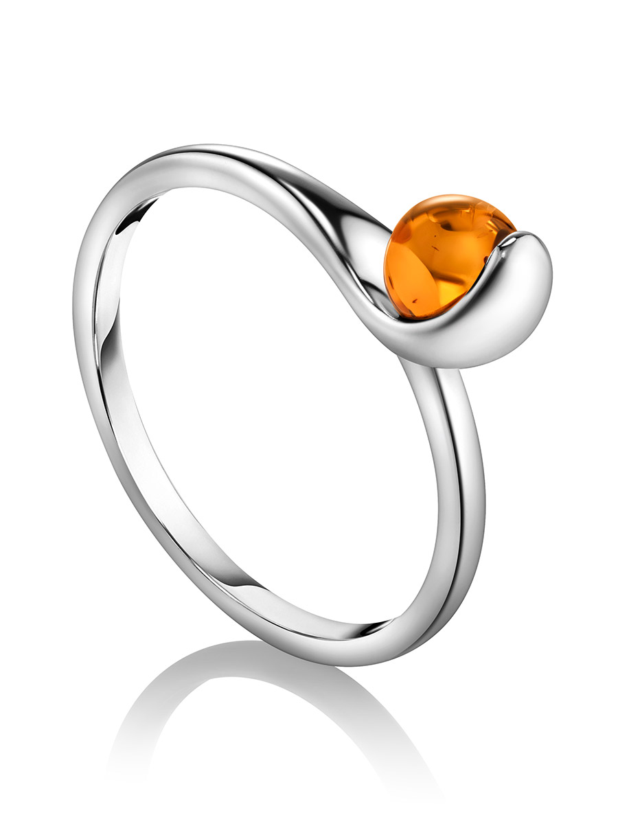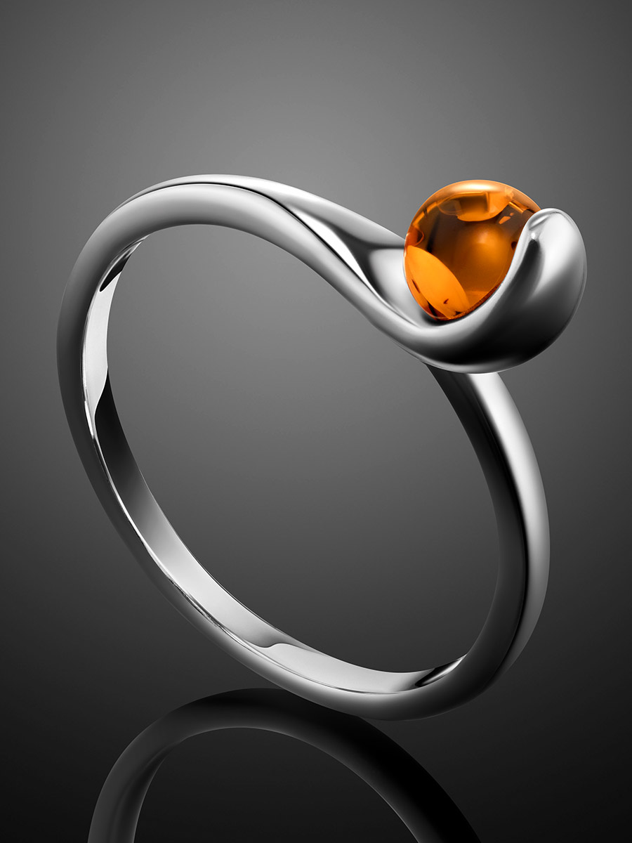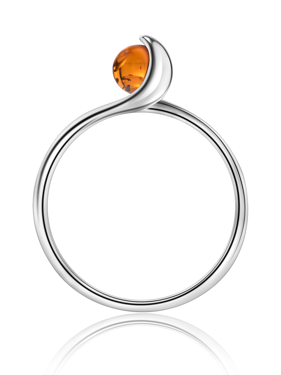 Стильное тонкое кольцо «Лея» из коньячного янтаря