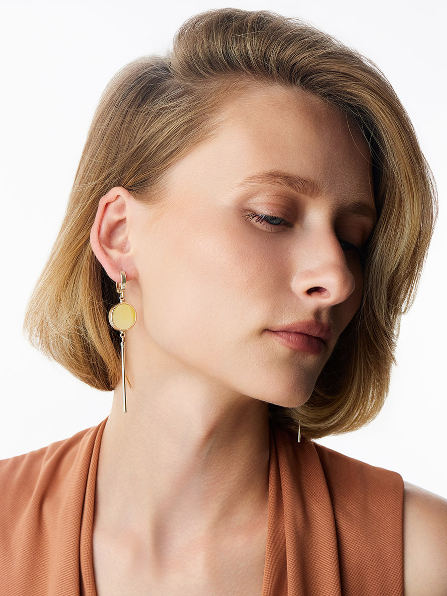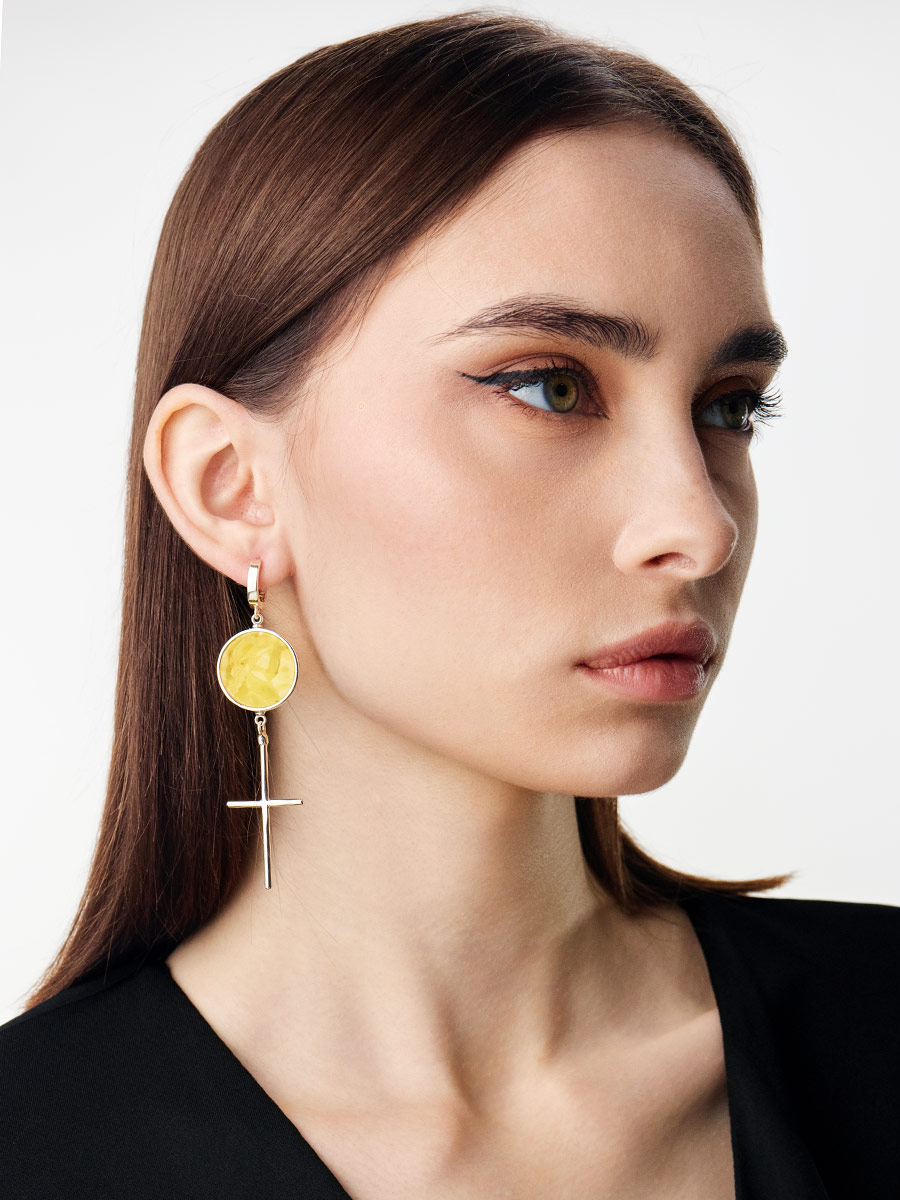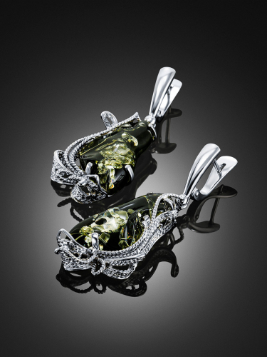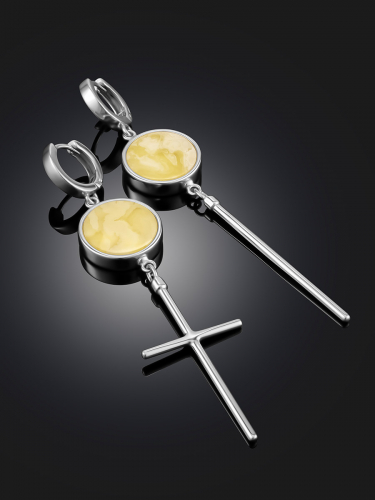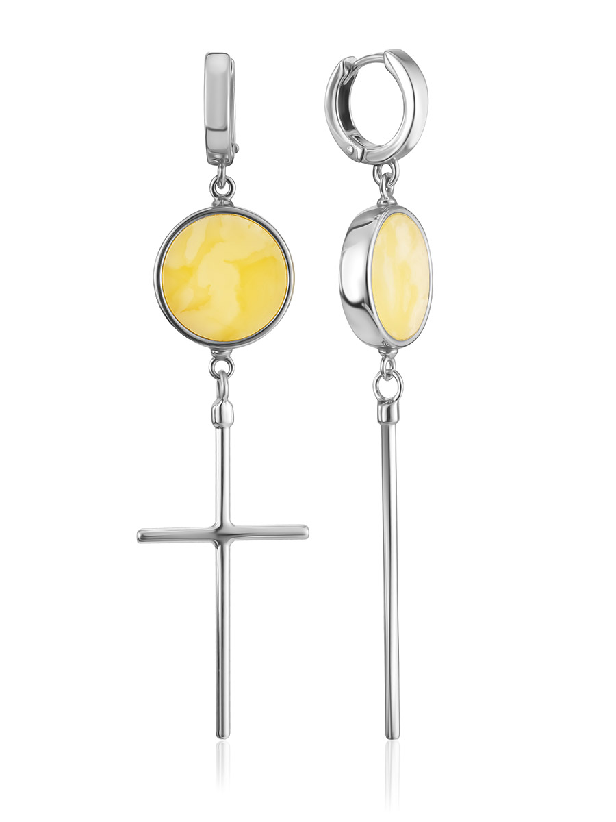 Стильные асимметричные серьги с медовым янтарём Palazzo