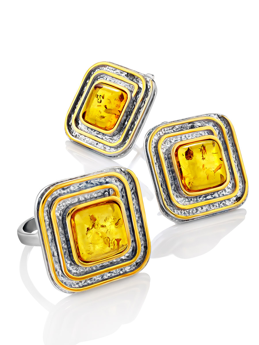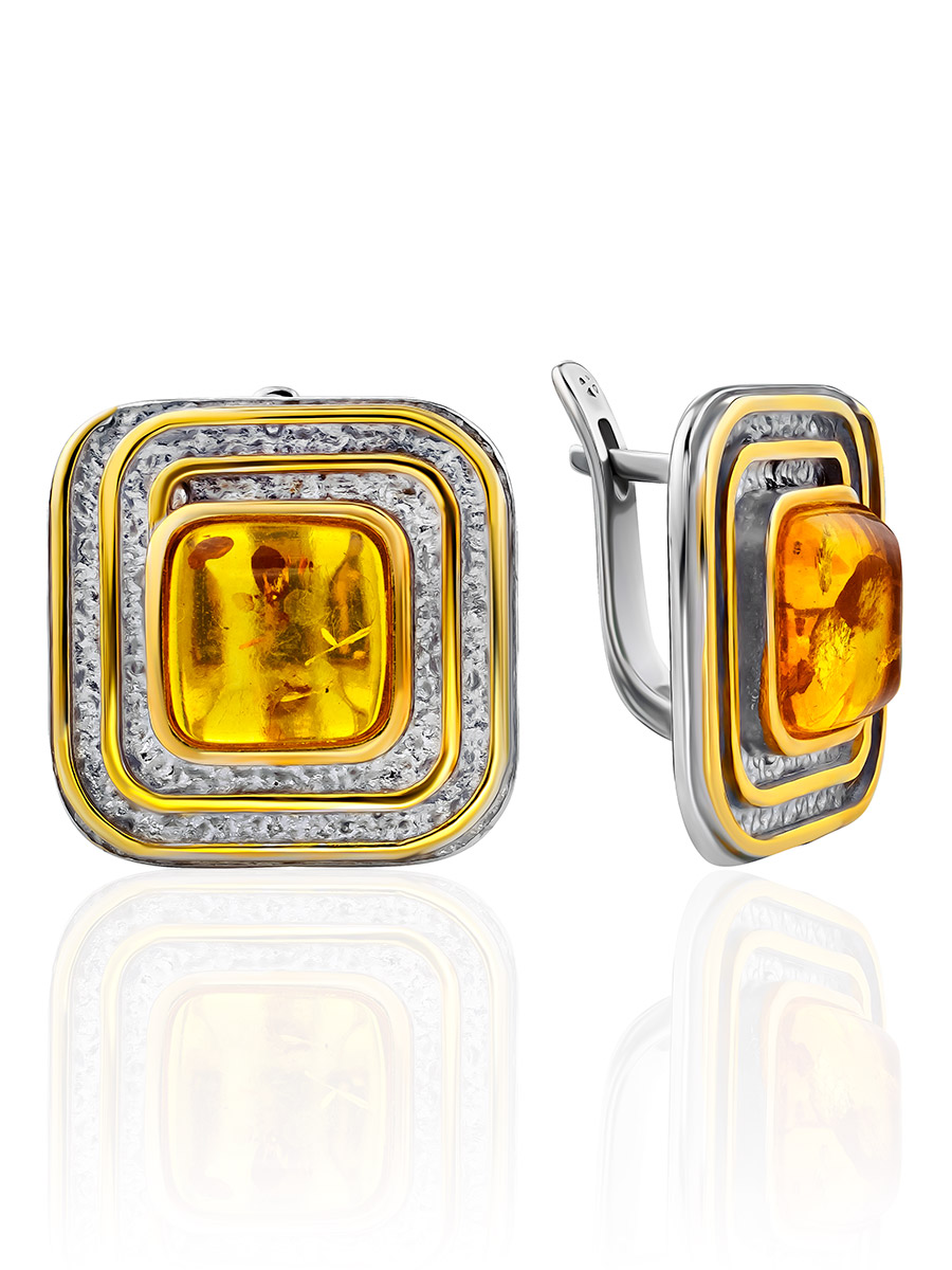 Стильные геометричные серьги «Колхида» из натурального янтаря