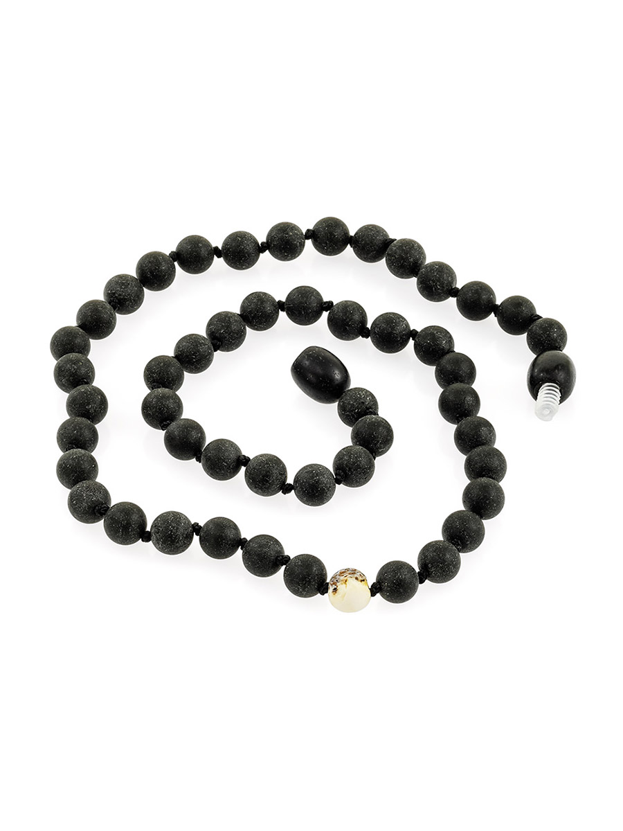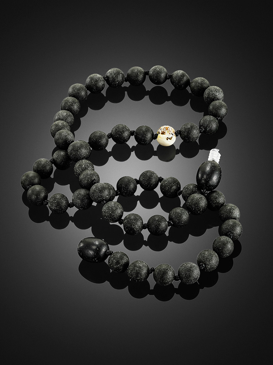 Стильные короткие бусы-чокер из чёрного янтаря «Куба»