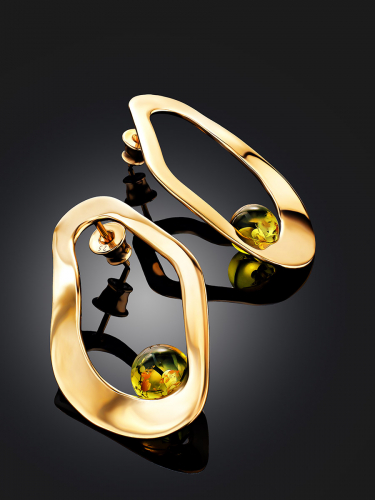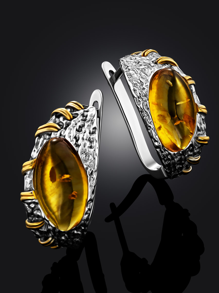 Стильные необычные серьги из золотистого янтаря «Гвинея»