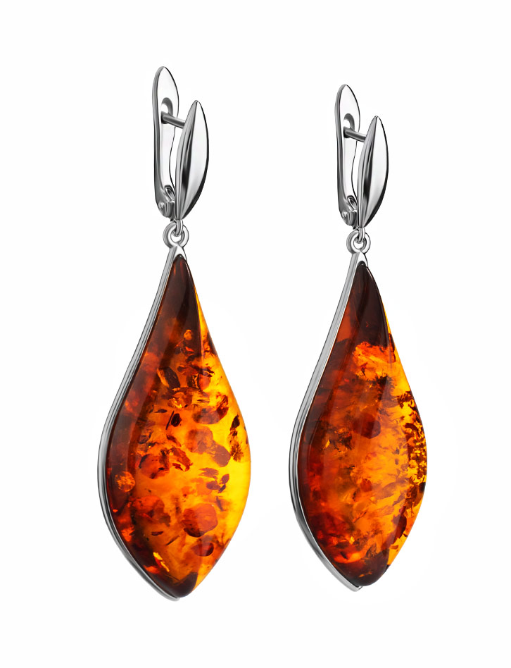 Стильные серьги «Аризона» из тёмно-коньячного янтаря