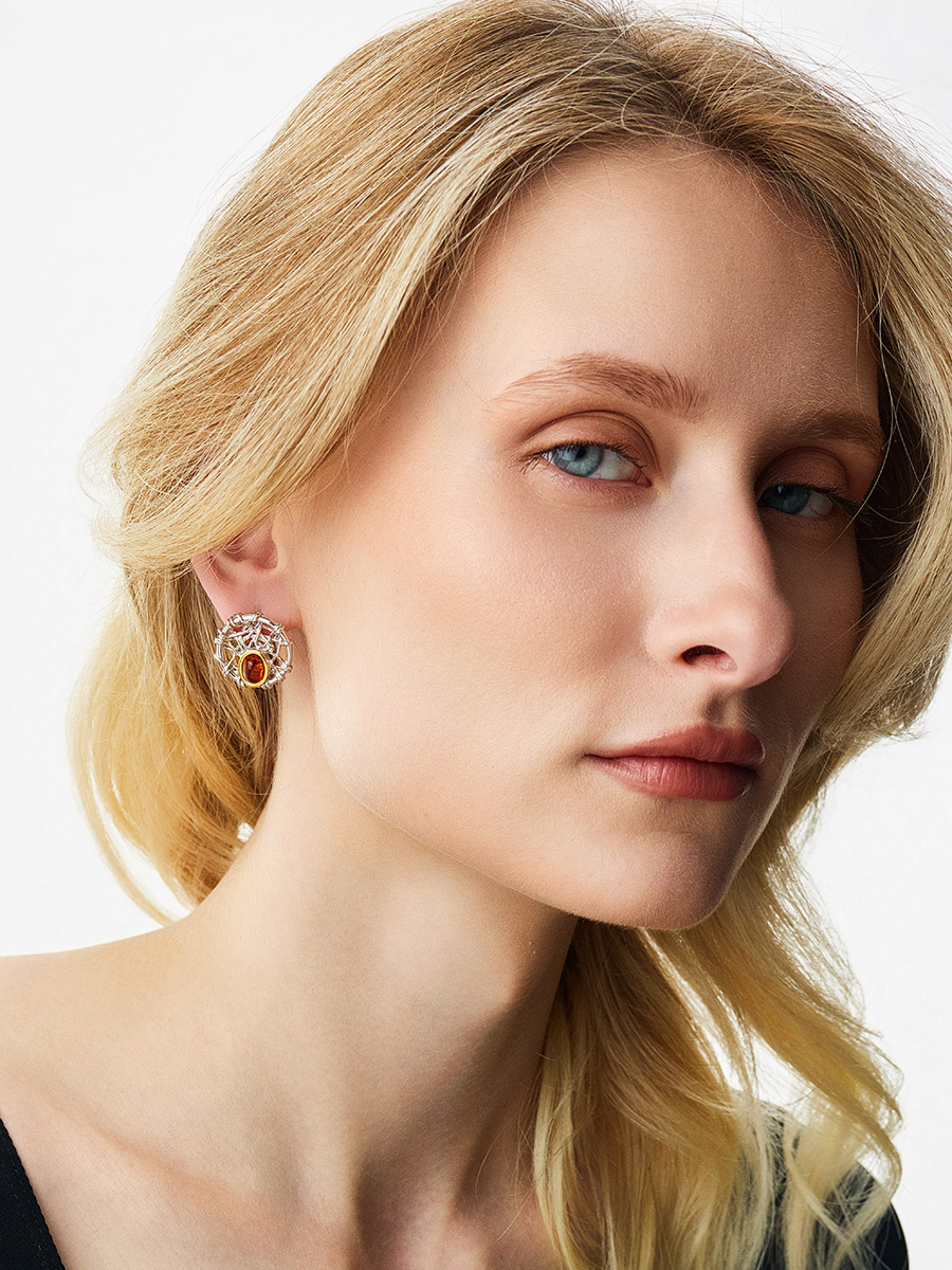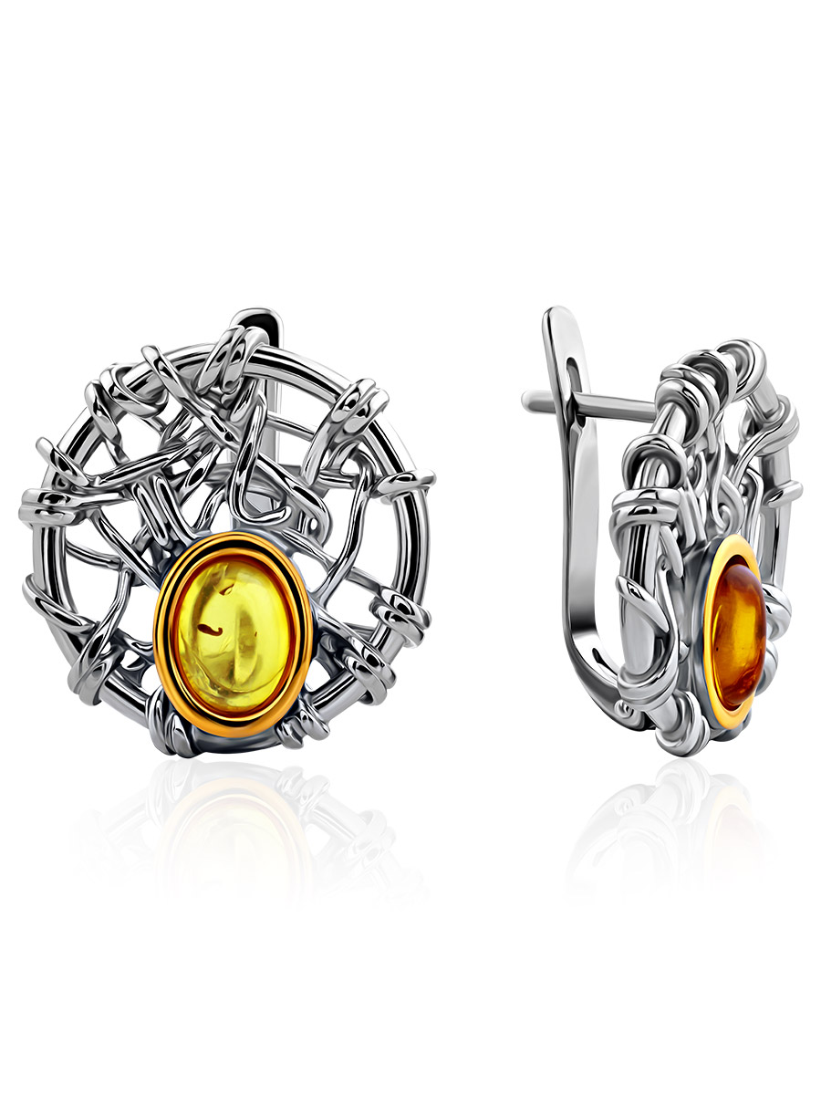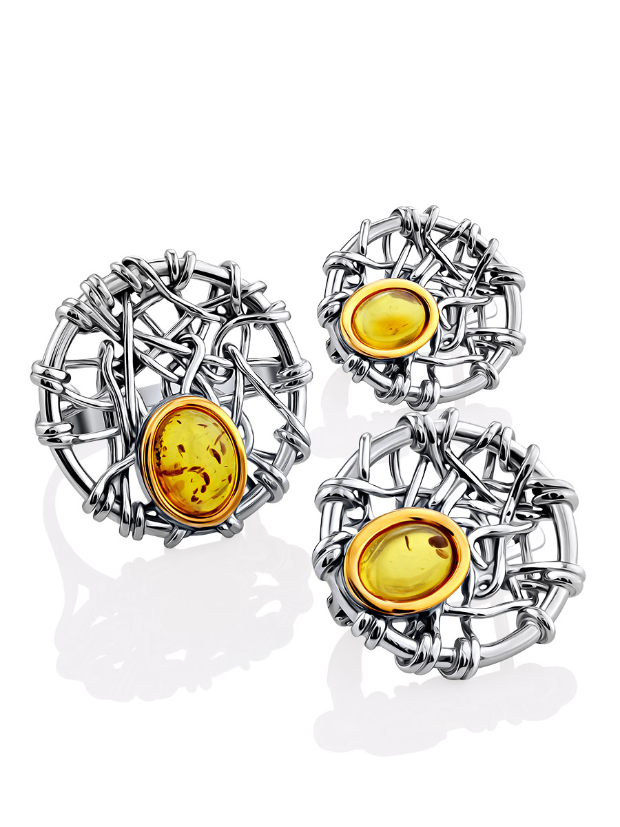 Стильные серьги «Гнездо» из натурального янтаря